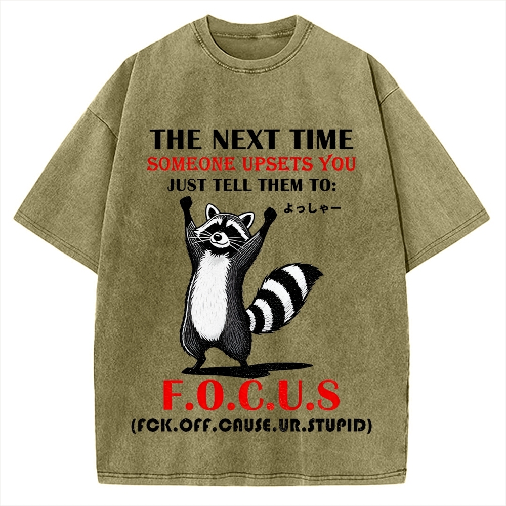 Funny raccoon the next time someone upsets you just tell them to f.o.c.u.s Vintage Washed T-shirt