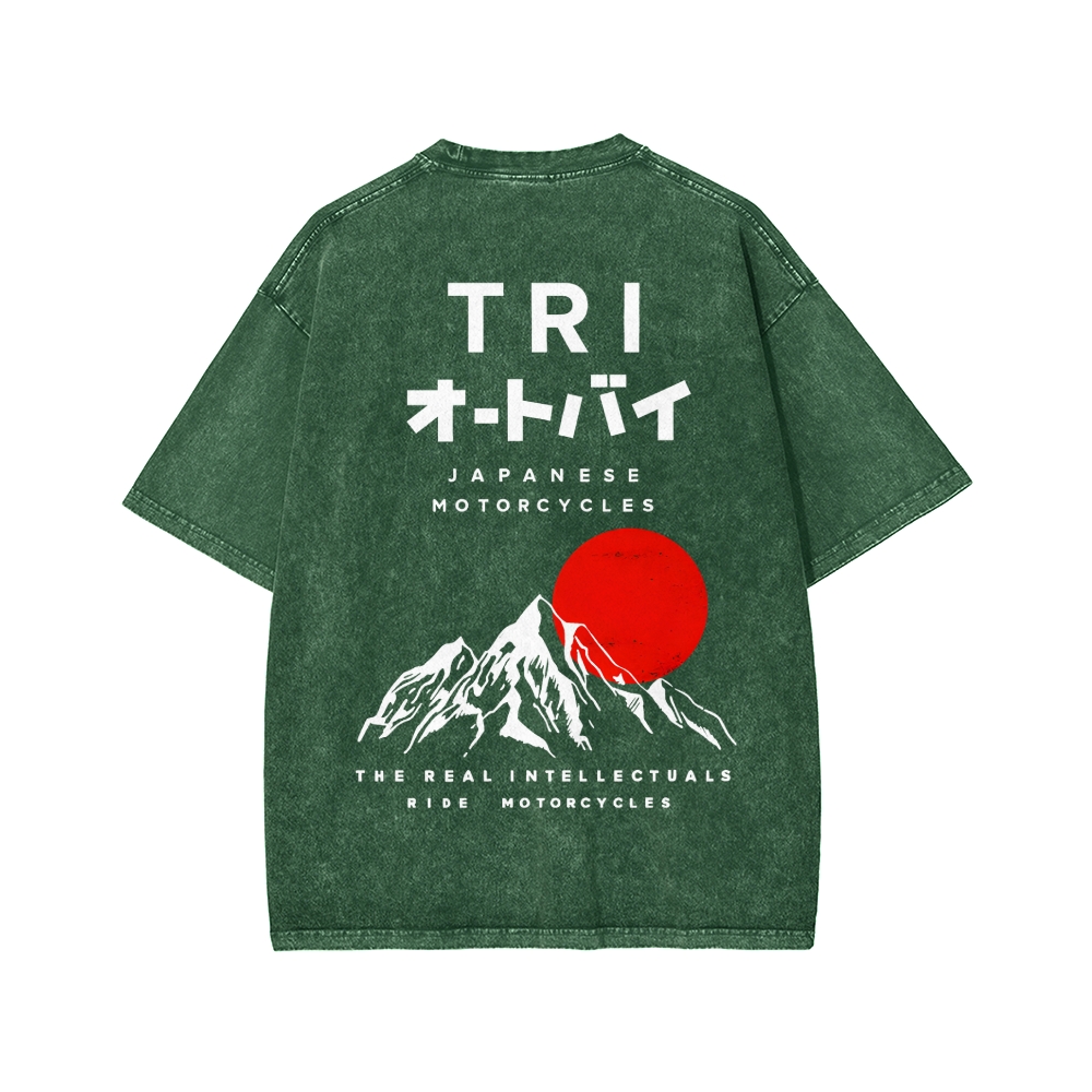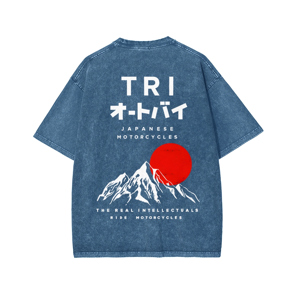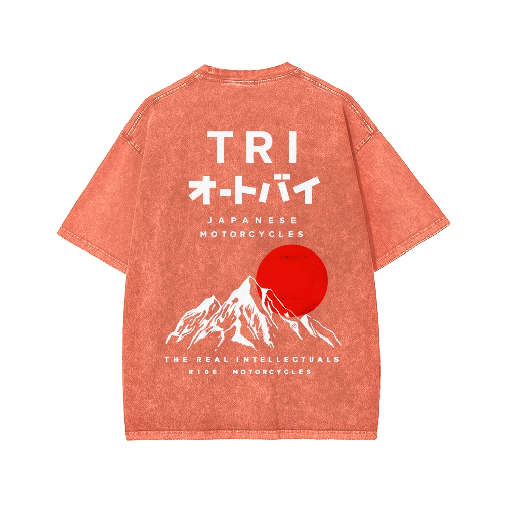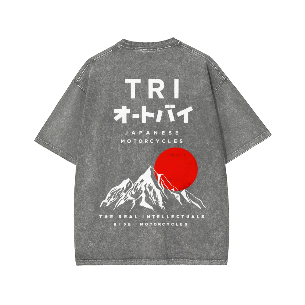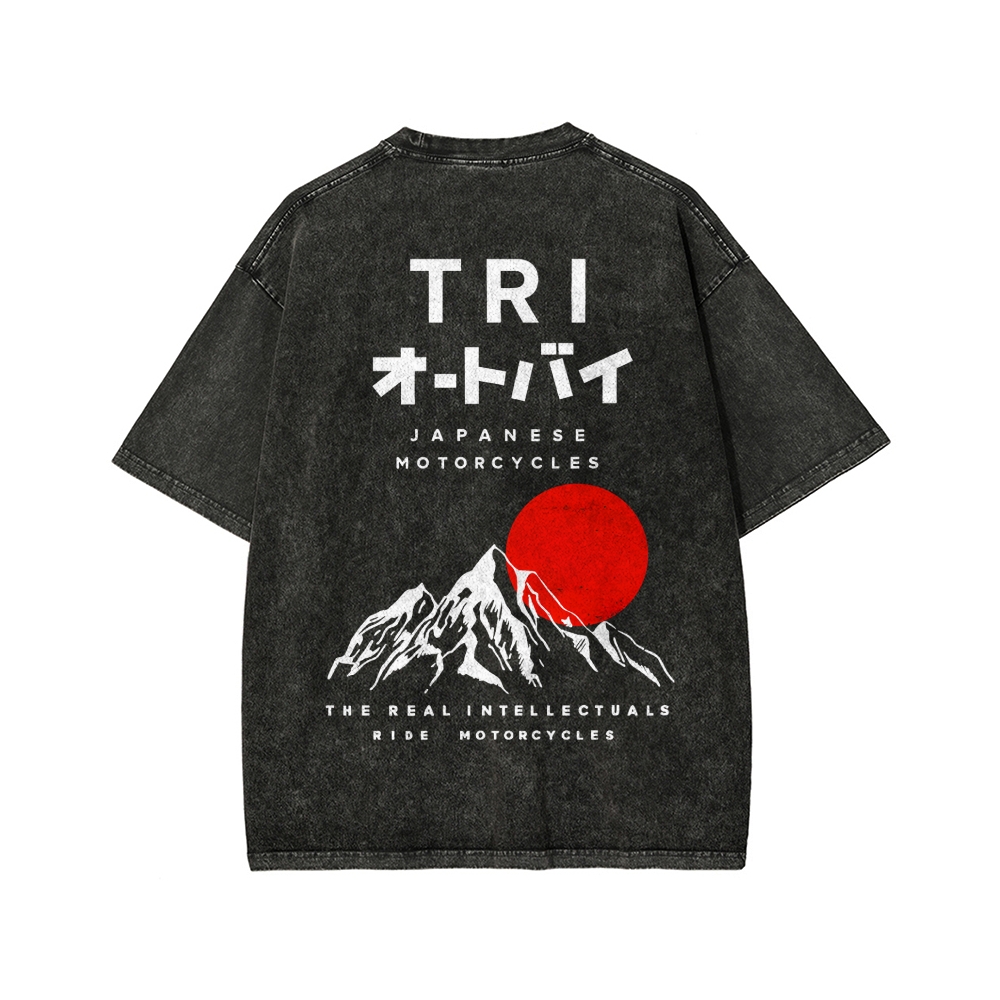 Japanese Front And Back Printing Washed T-shirt
