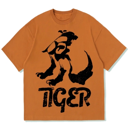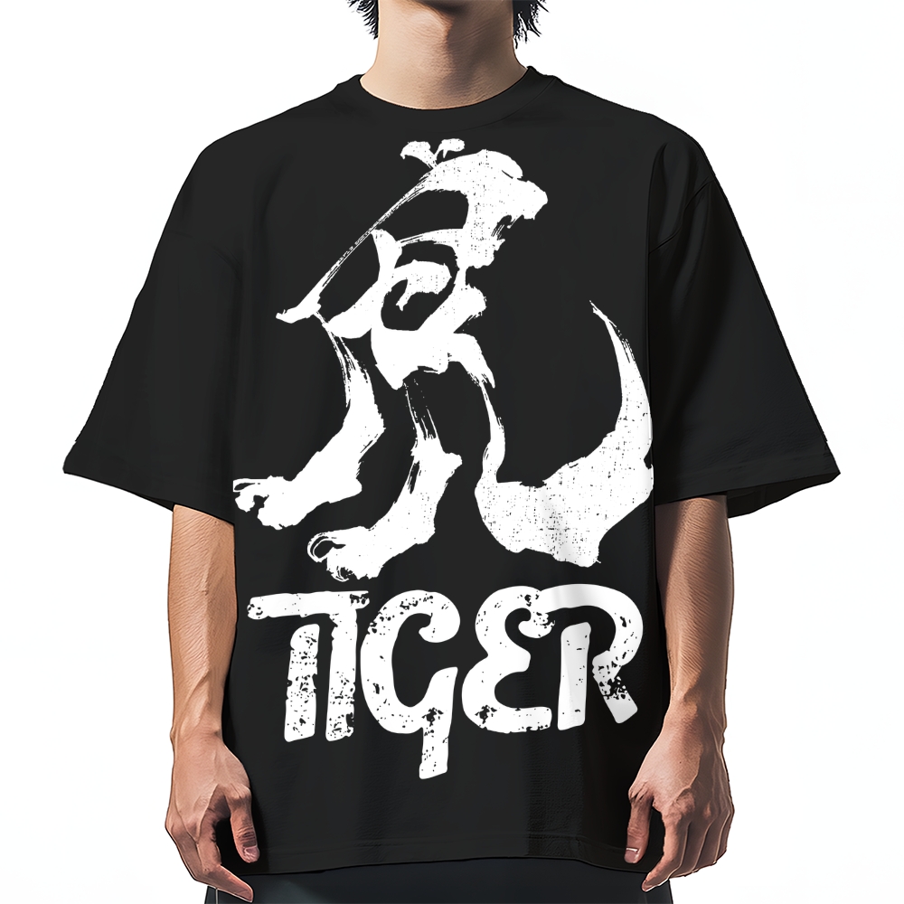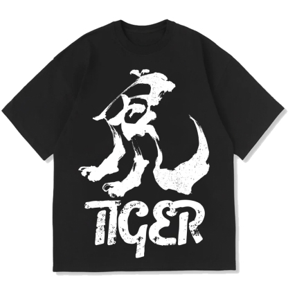 Japanese Ink Art Tiger Kanji Cotton casual T-shirt