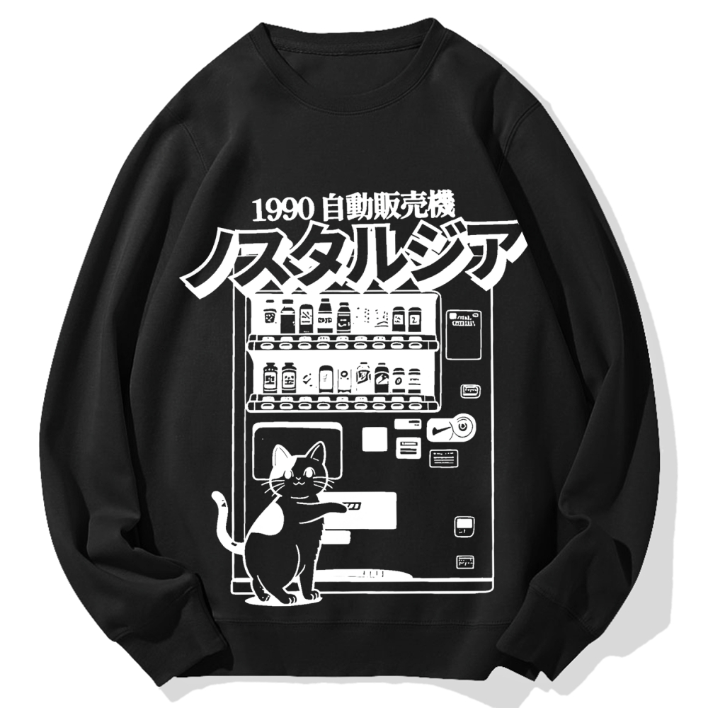 Retro Japan Cat Vending Machine 90s Anime Harajuku Nostalgic Cotton Sweatshirt