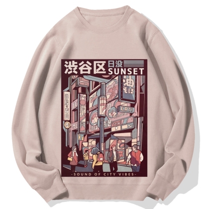 Street Of Sunset Shibuya Japan Cotton Sweatshirt
