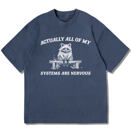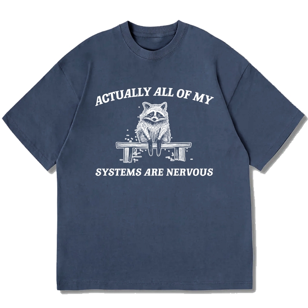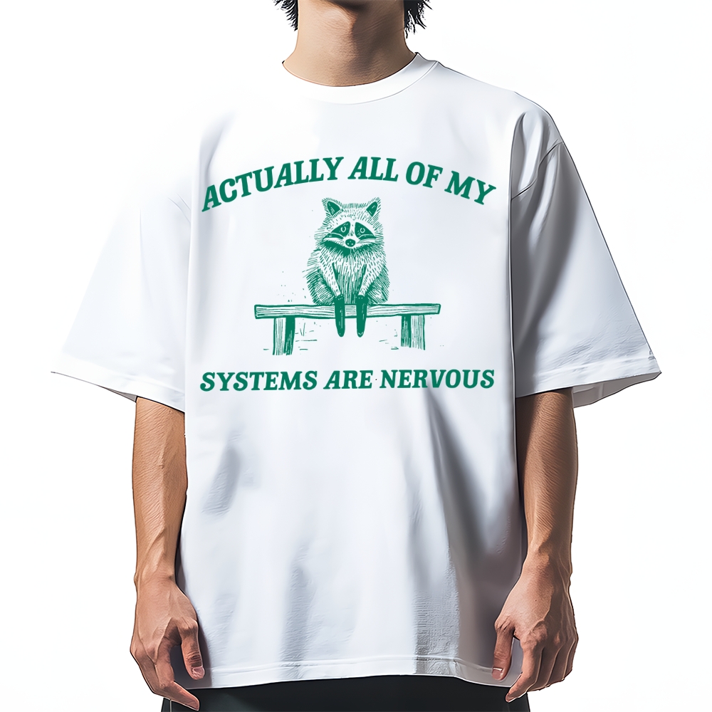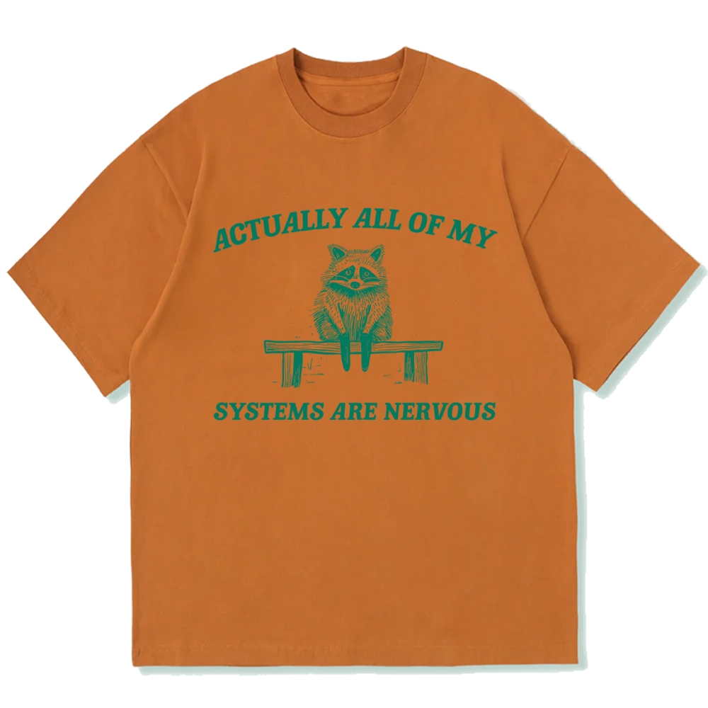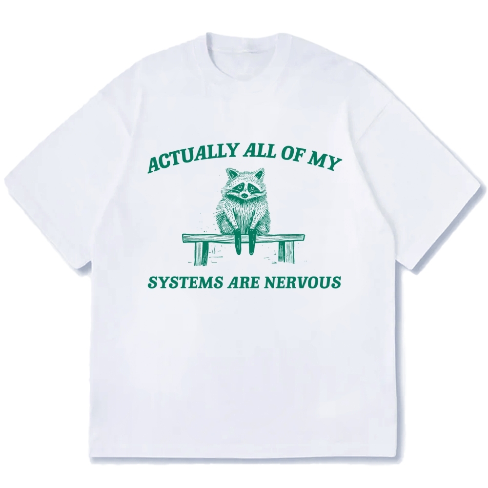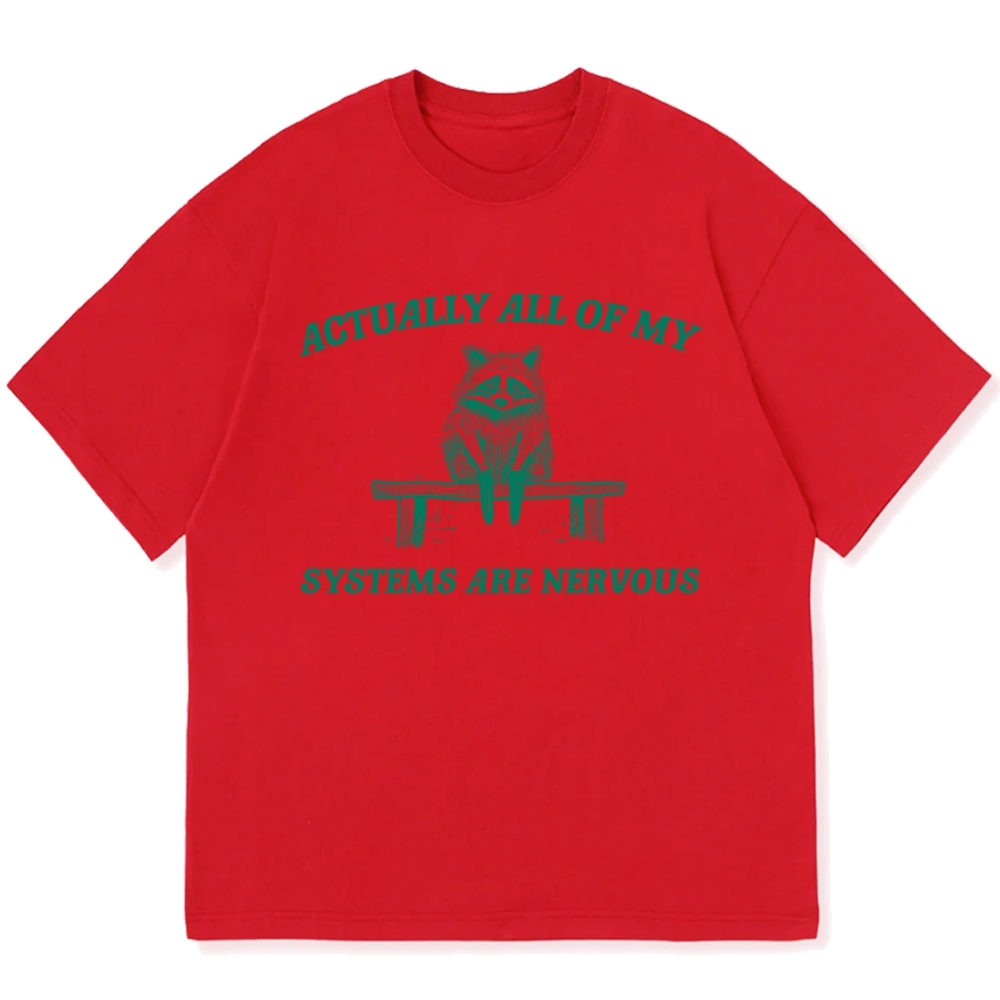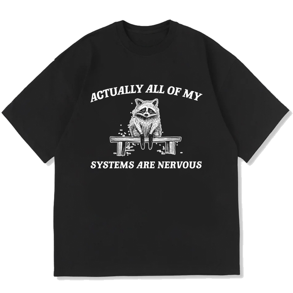 Actually All My Systems Are Nervous Raccoon Anxiety Cotton casual T-shirt