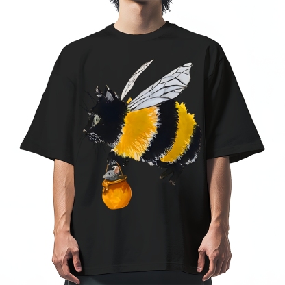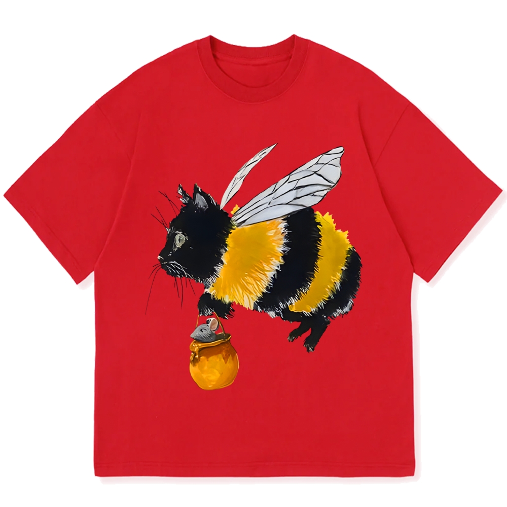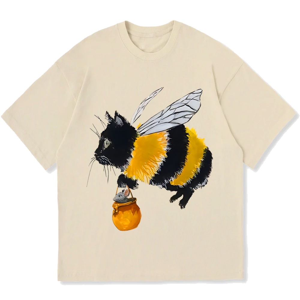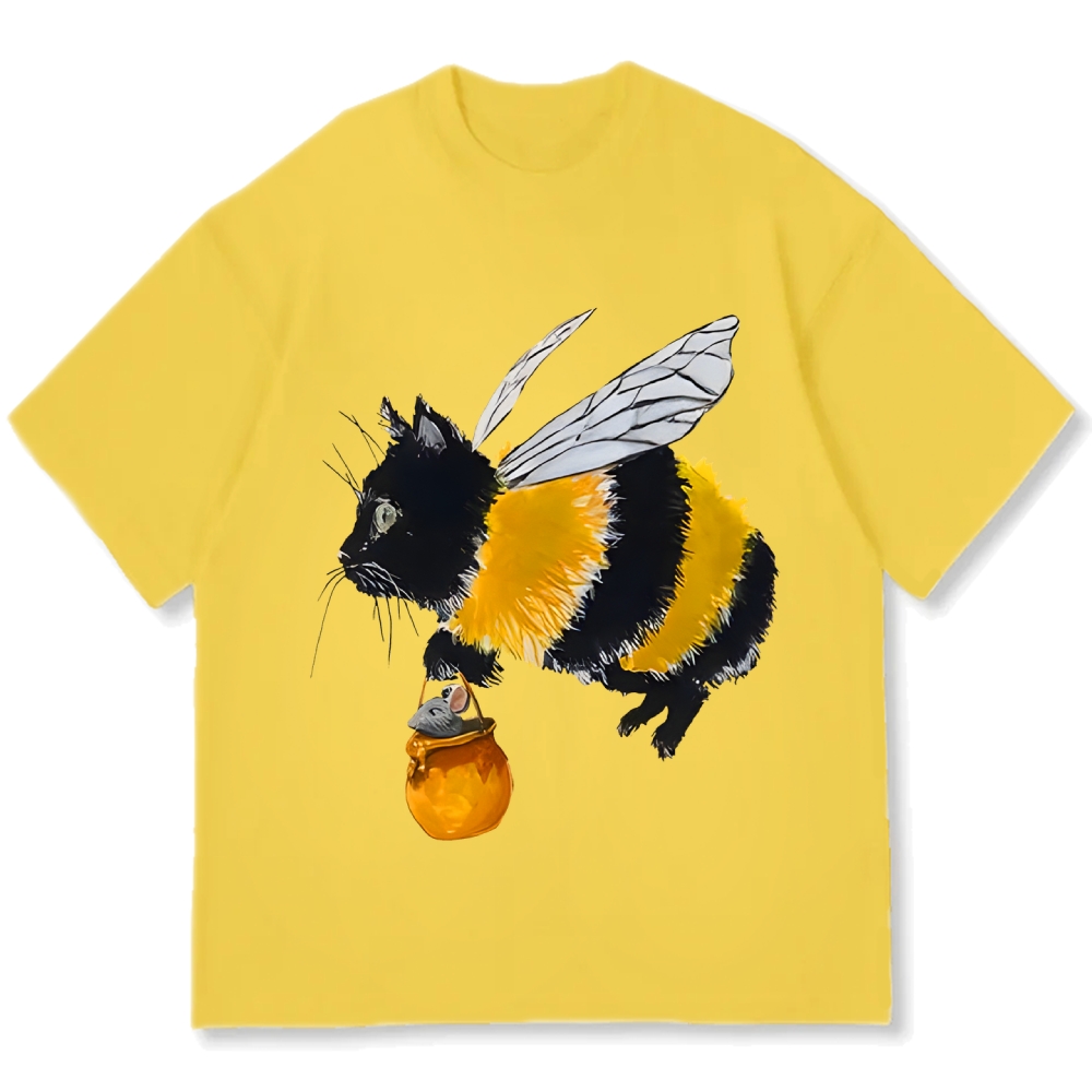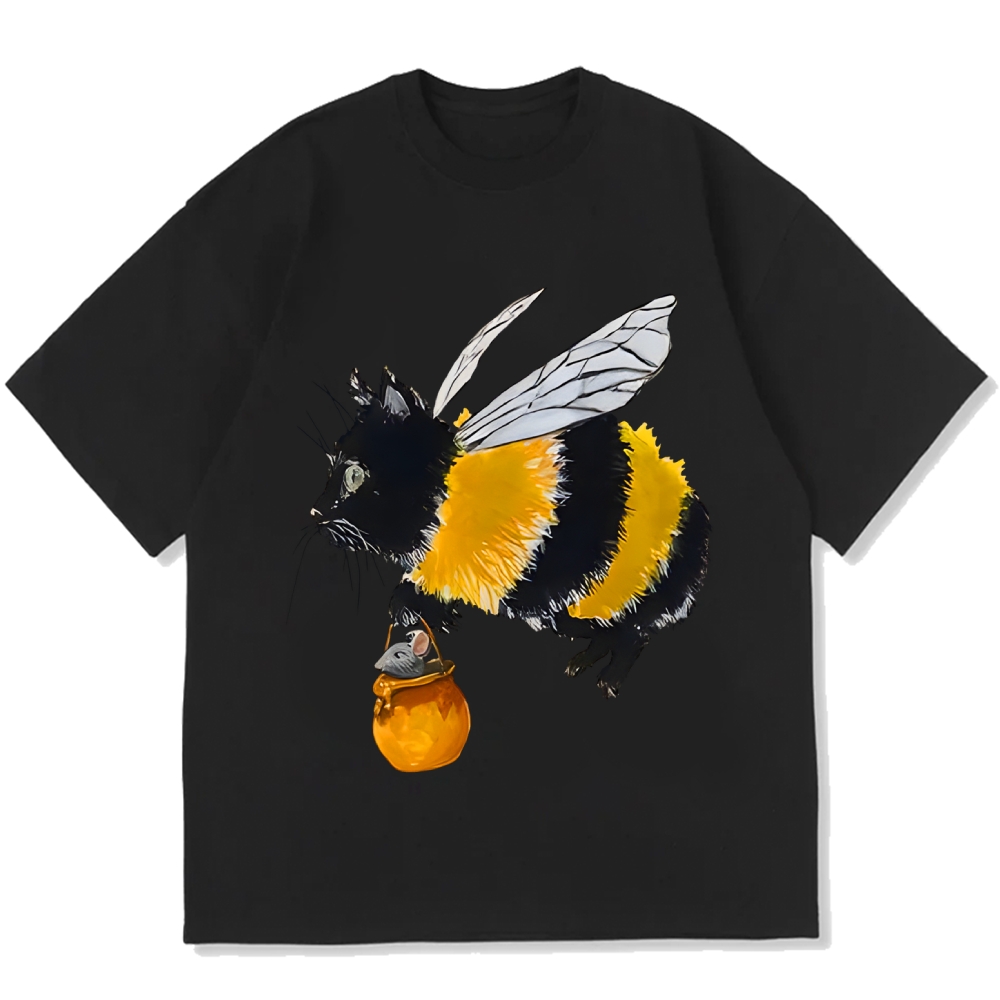 Funny bee cat Cotton casual T-shirt