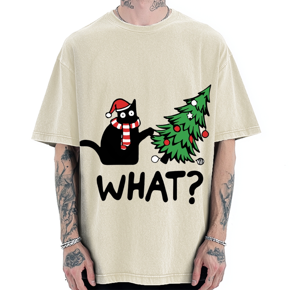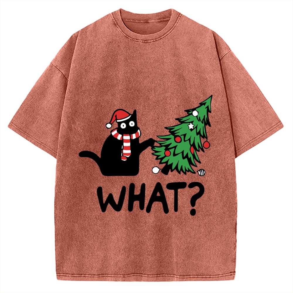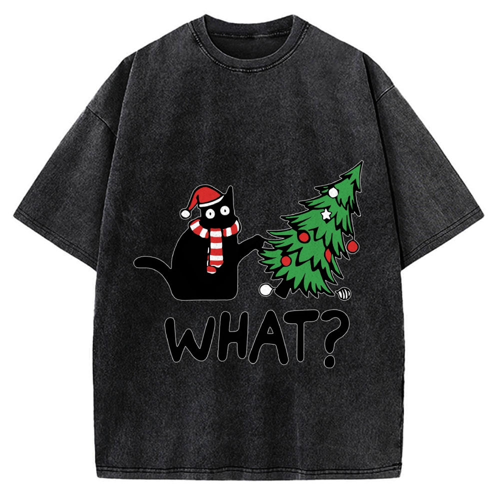 Funny Black Cat Gifts Pushing Christmas Tree Over Cat What Vintage Washed T-shirt