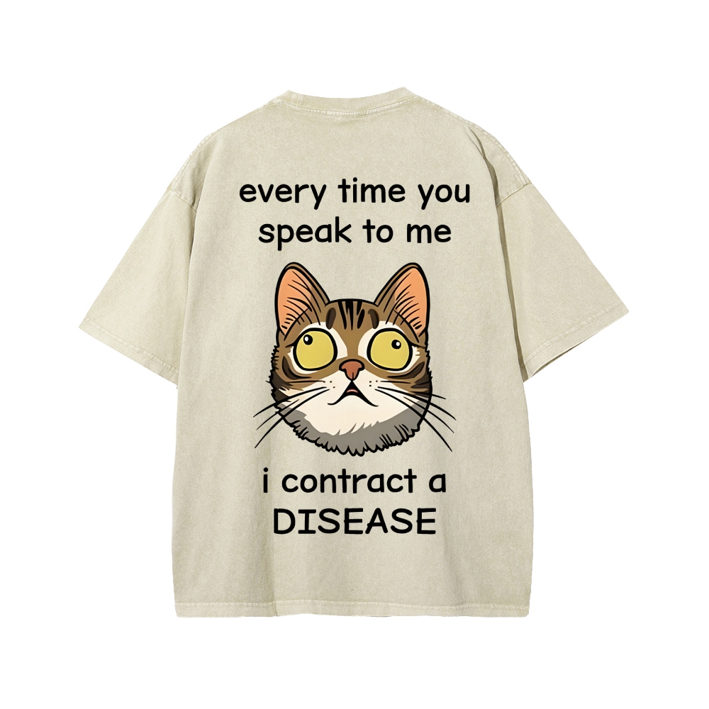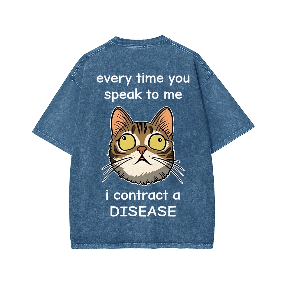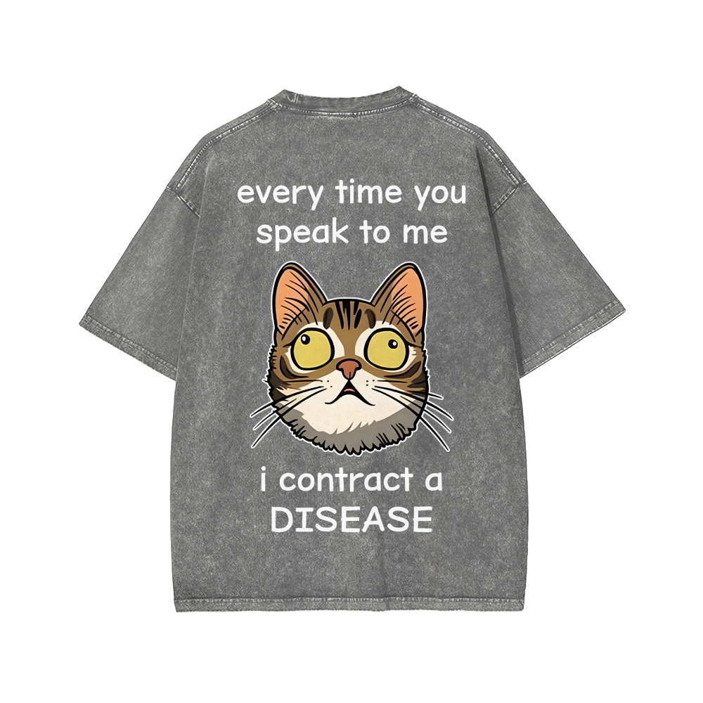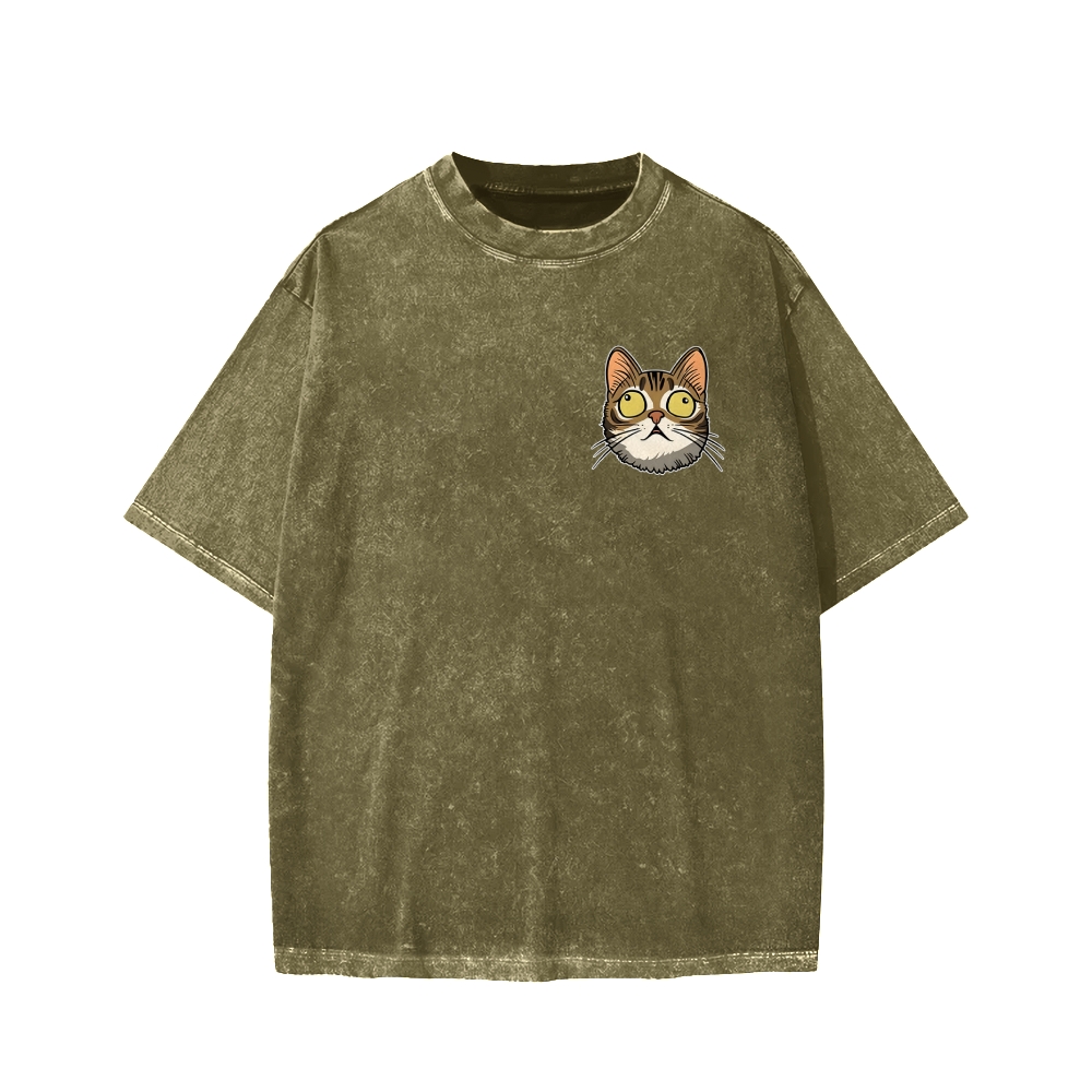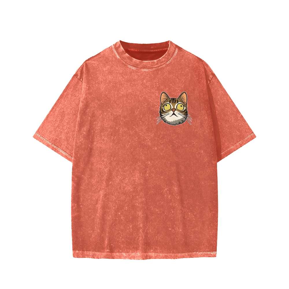 Funny Cat Rolling Eyes Front And Back Printing Washed T-shirt