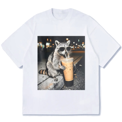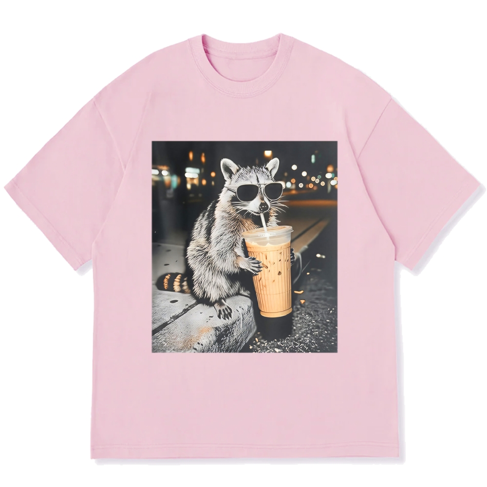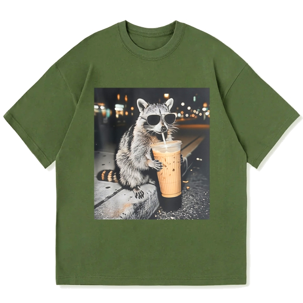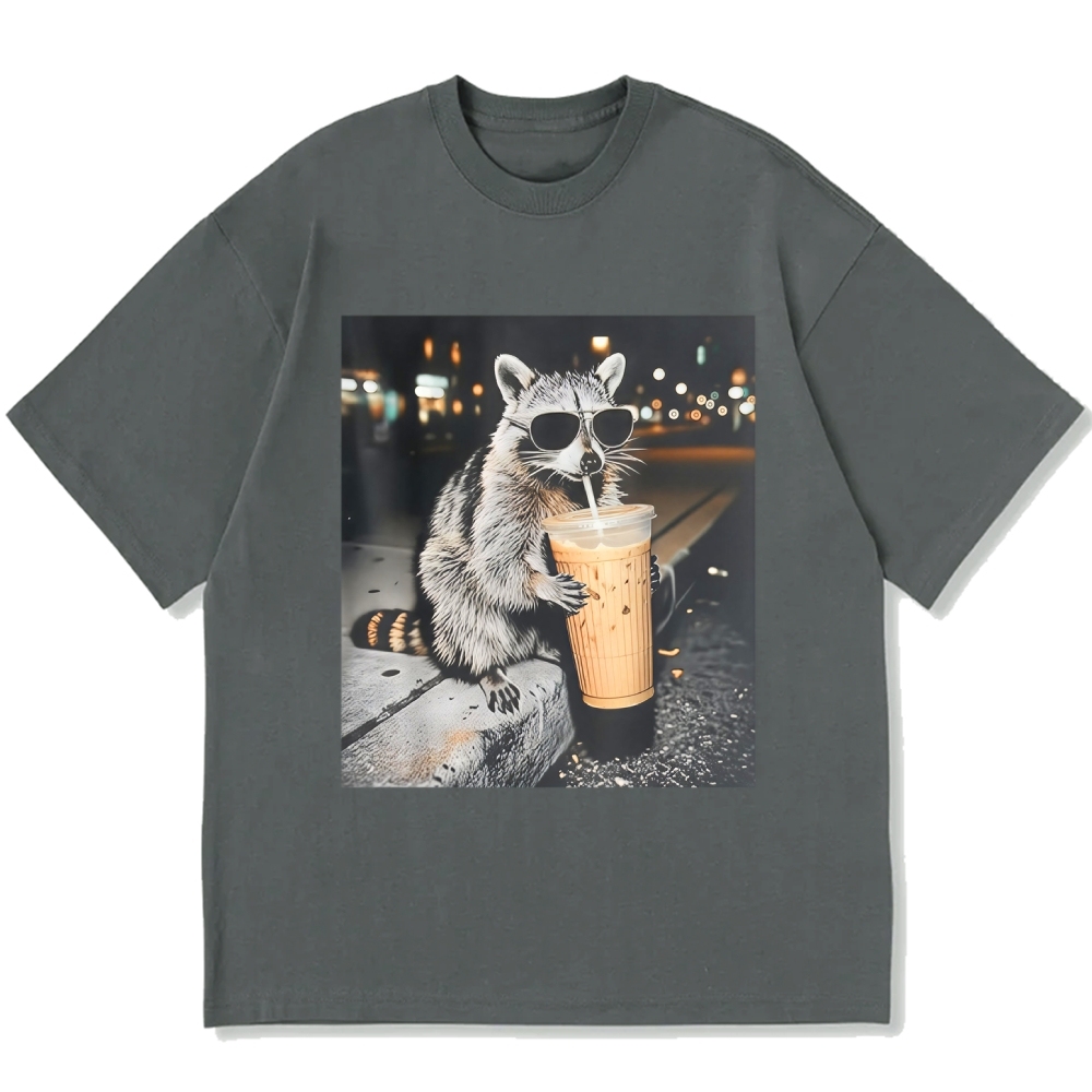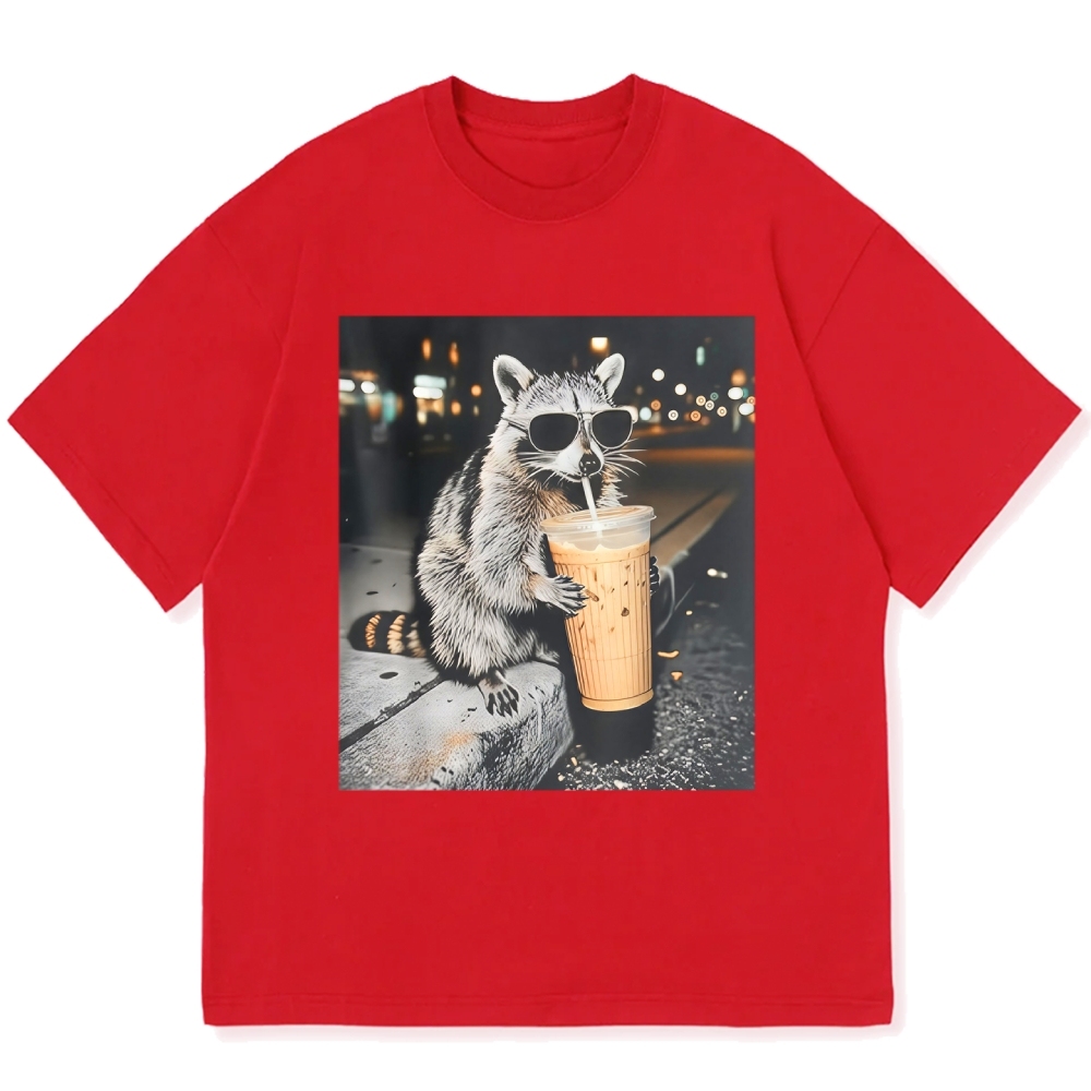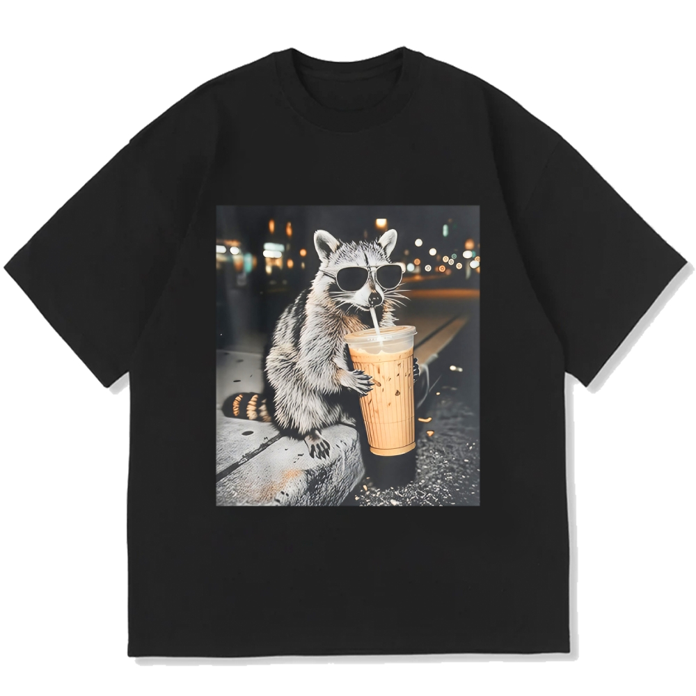 Funny Raccoon Drinking Iced Coffee Cotton casual T-shirt
