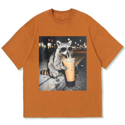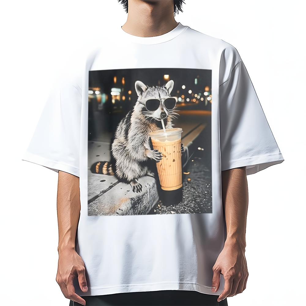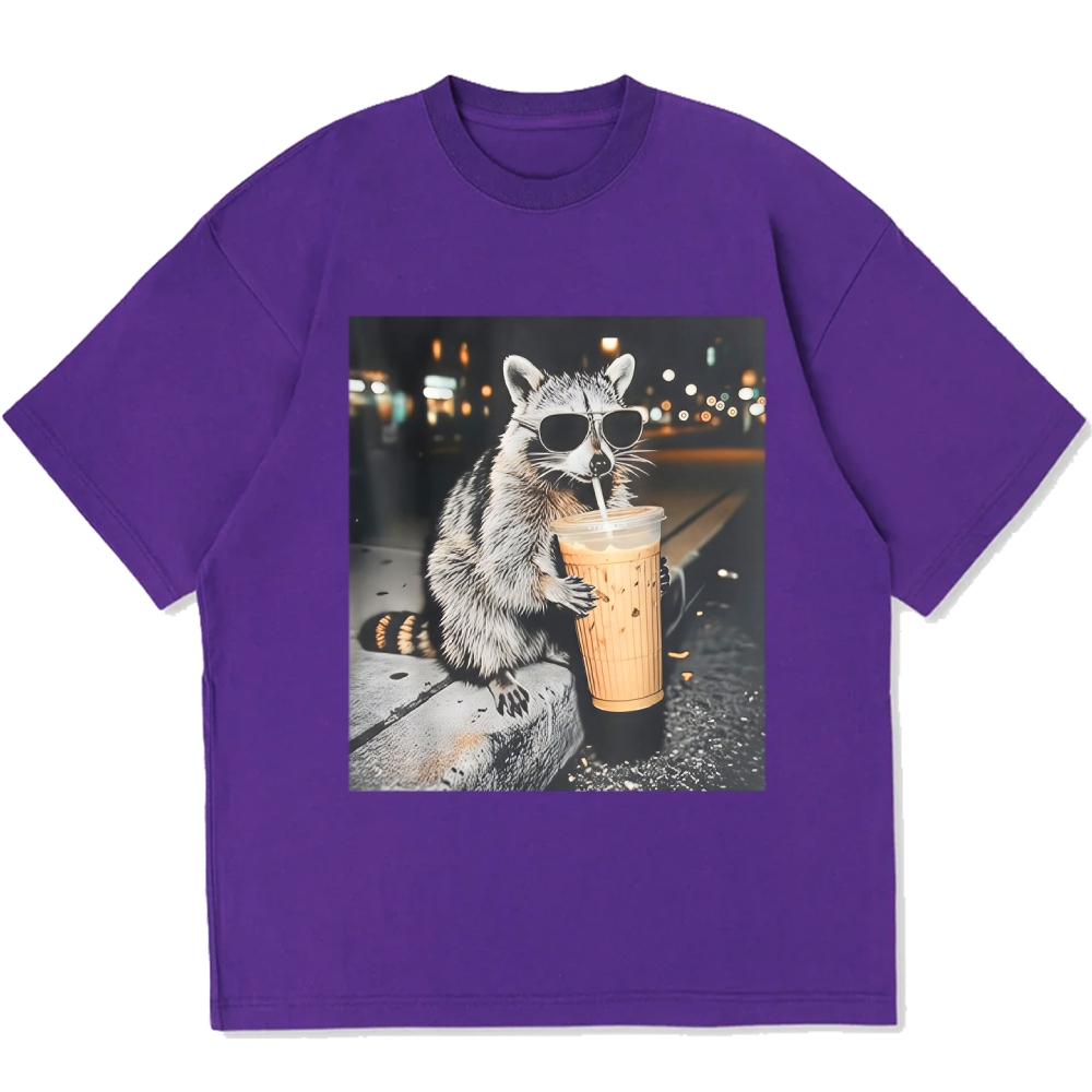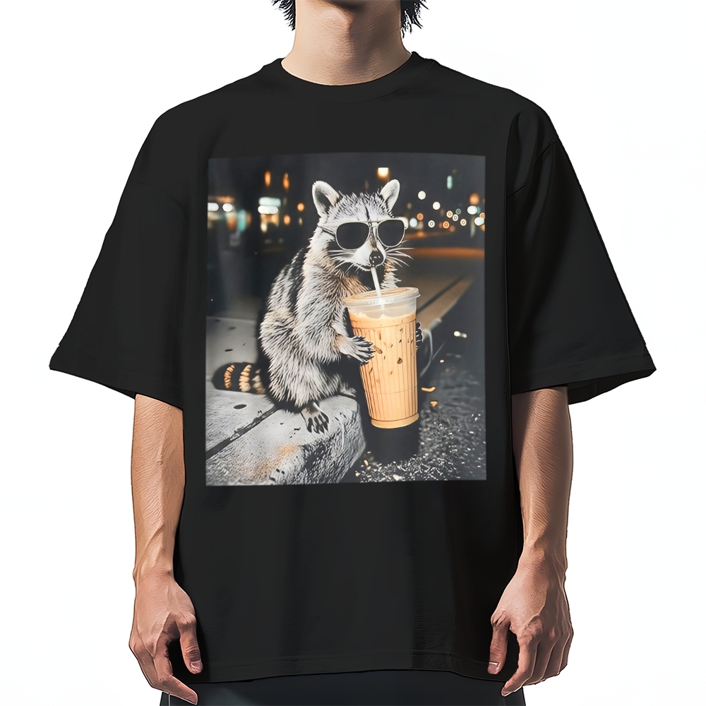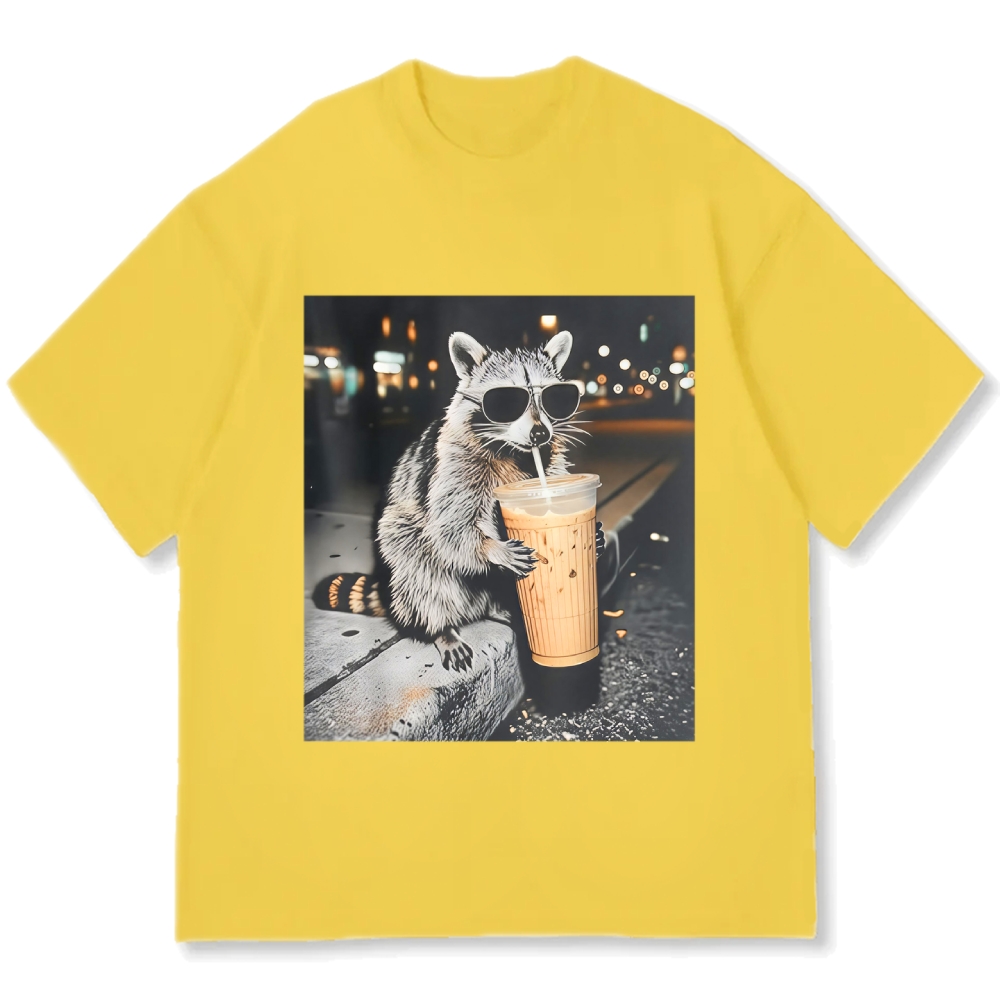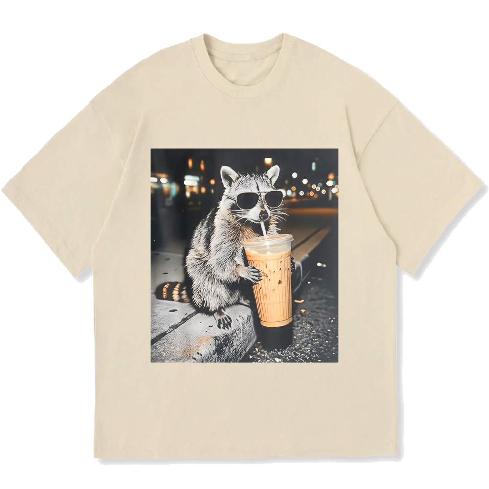 Funny Raccoon Drinking Iced Coffee Cotton casual T-shirt