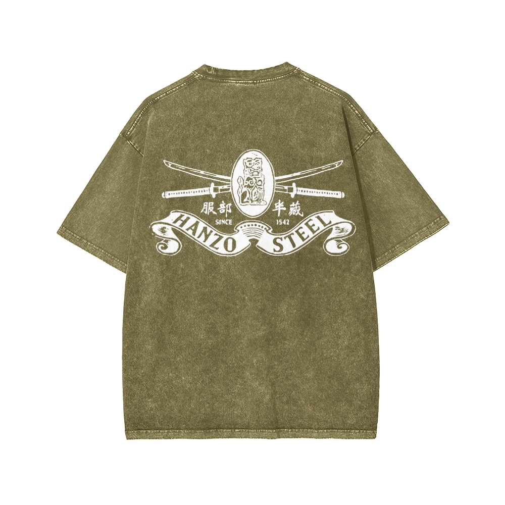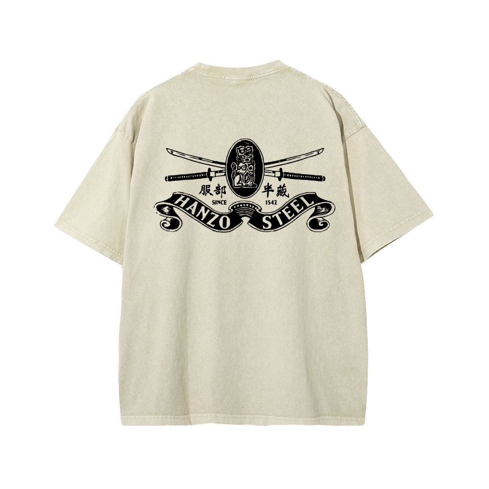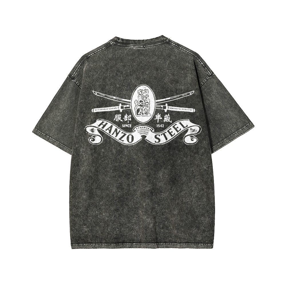 Hattori Hanzo Front And Back Printing Washed T-shirt