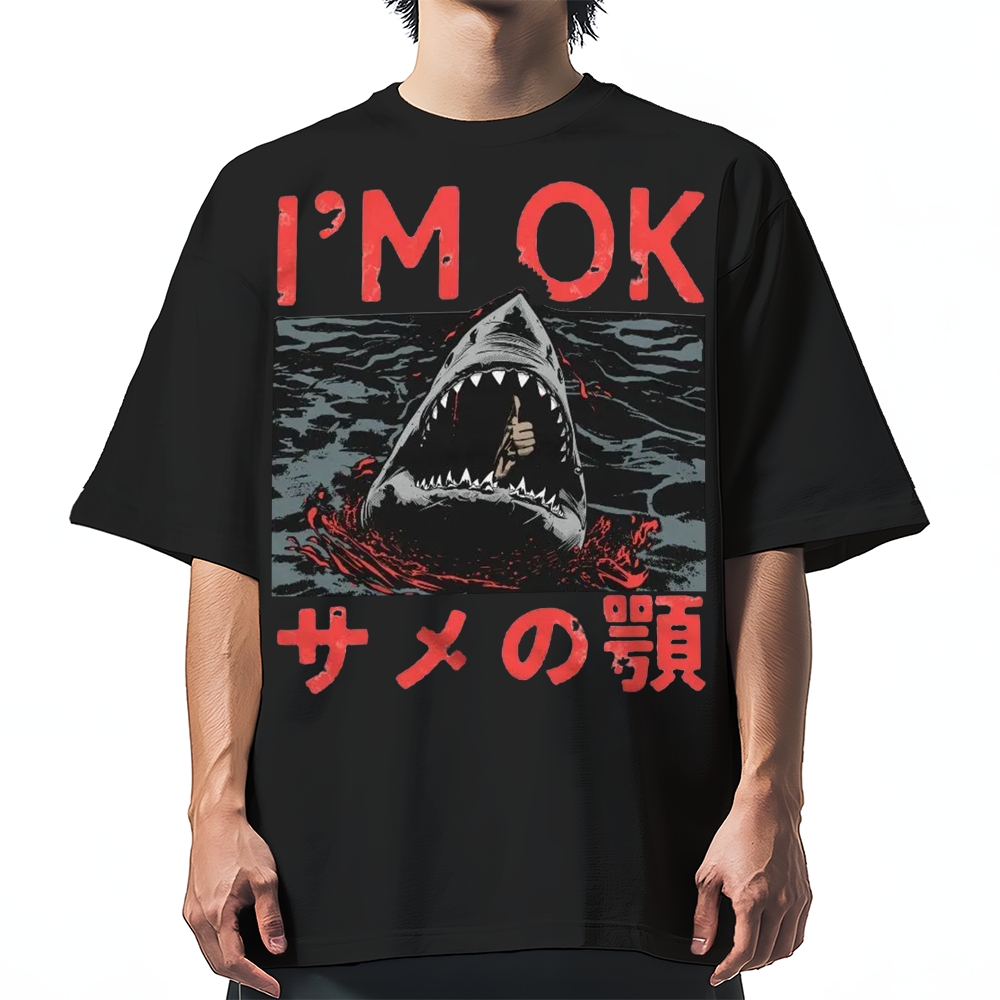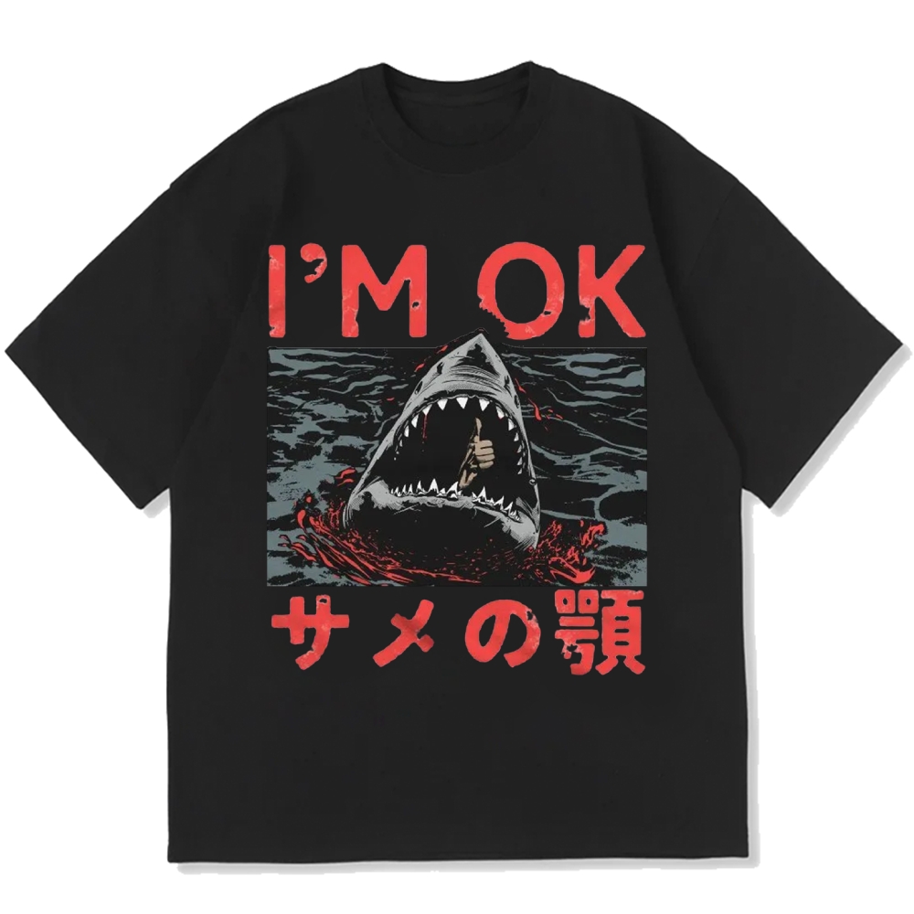 Im OK Huge Angry Shark Cotton casual T-shirt