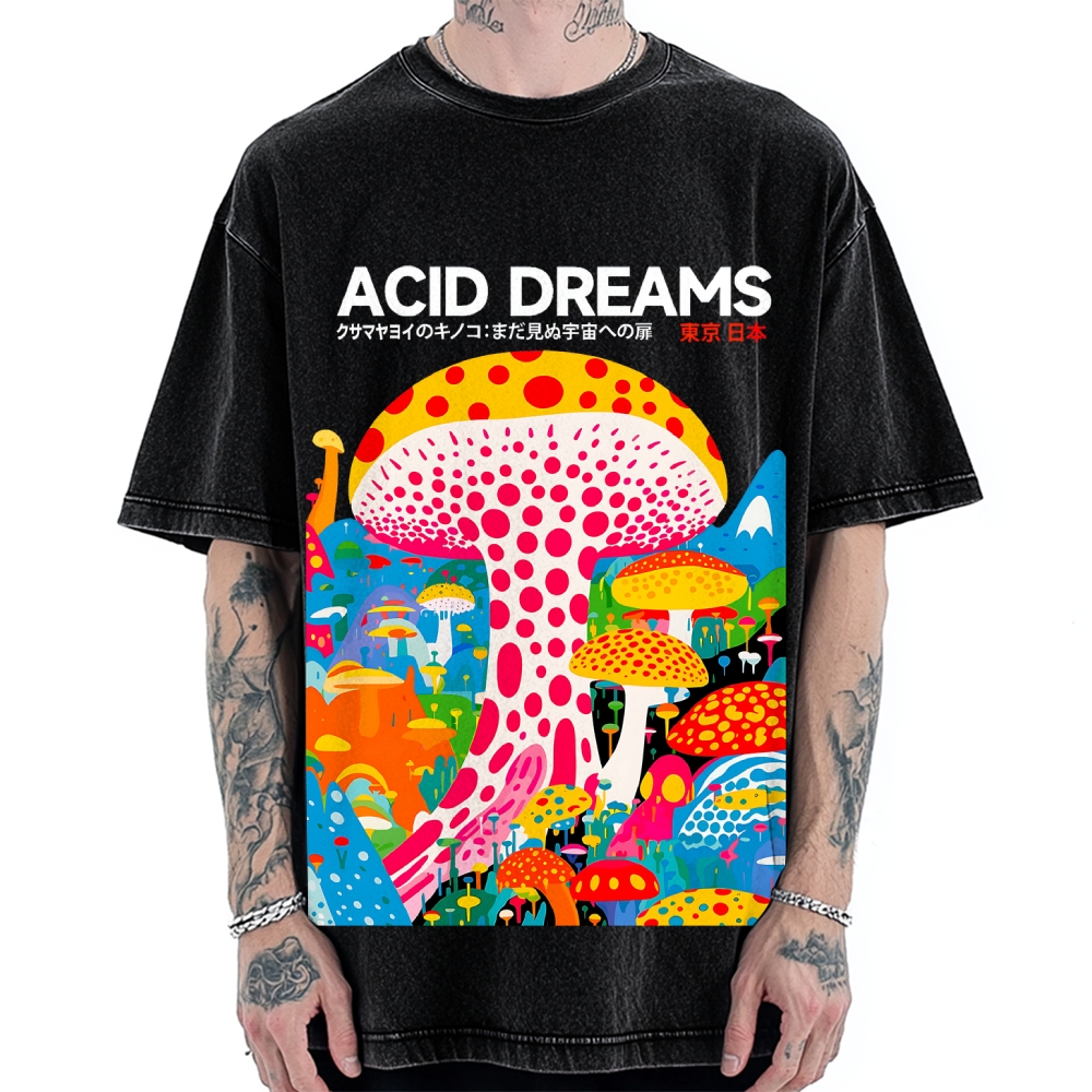Japanese Acid Dreams Mushroom Vintage Washed T-shirt