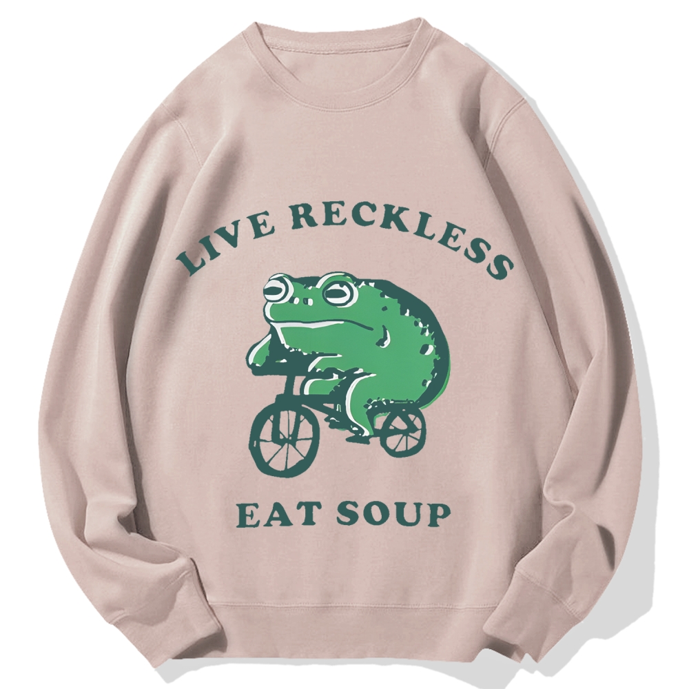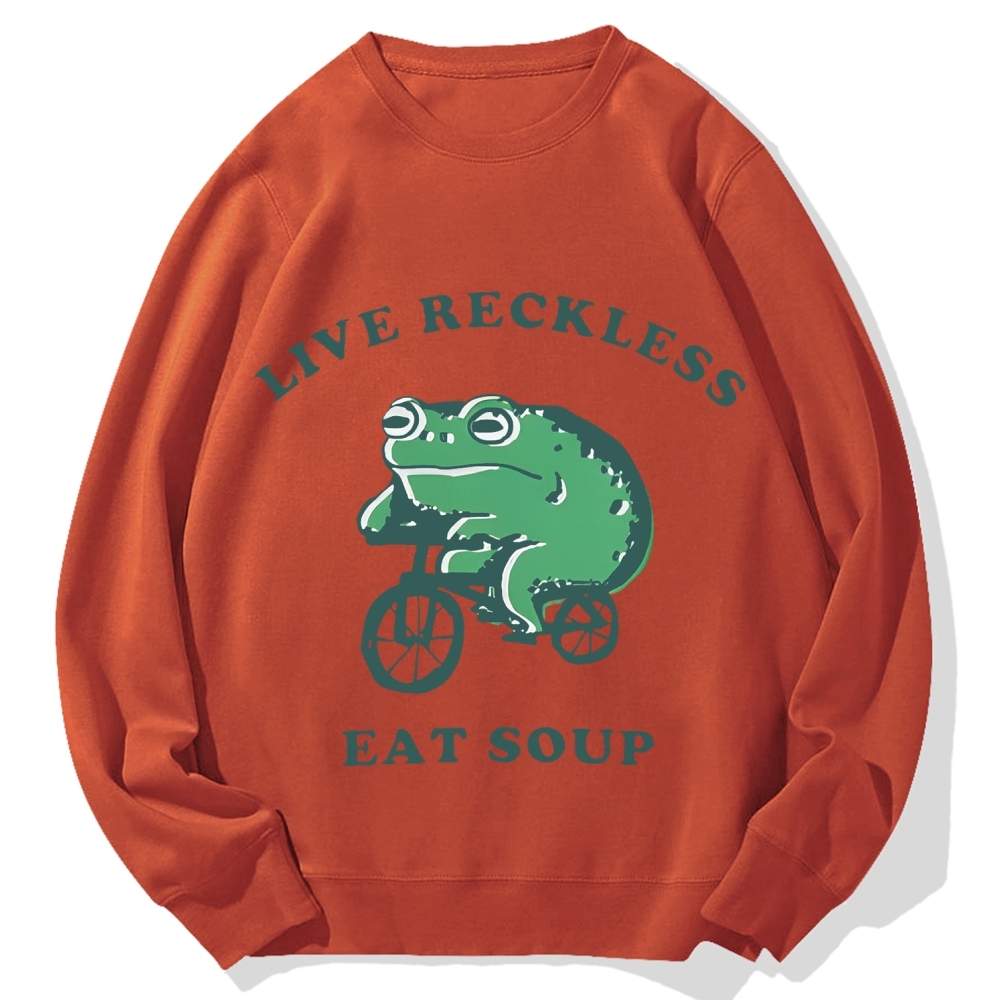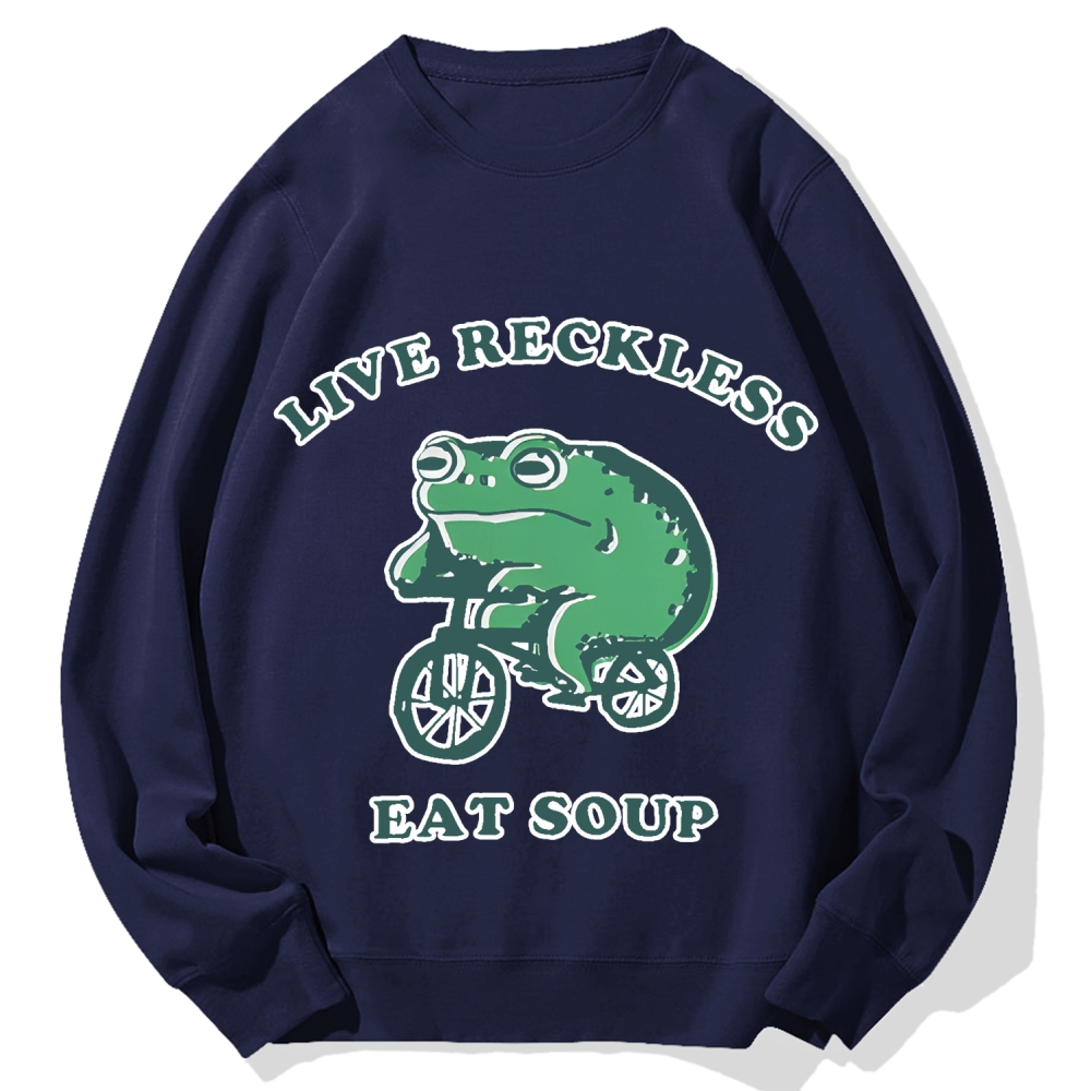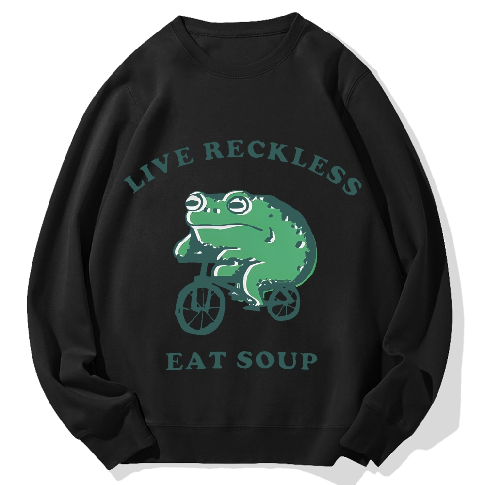 Live reckless eat soup biking frog Cotton Sweatshirt