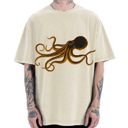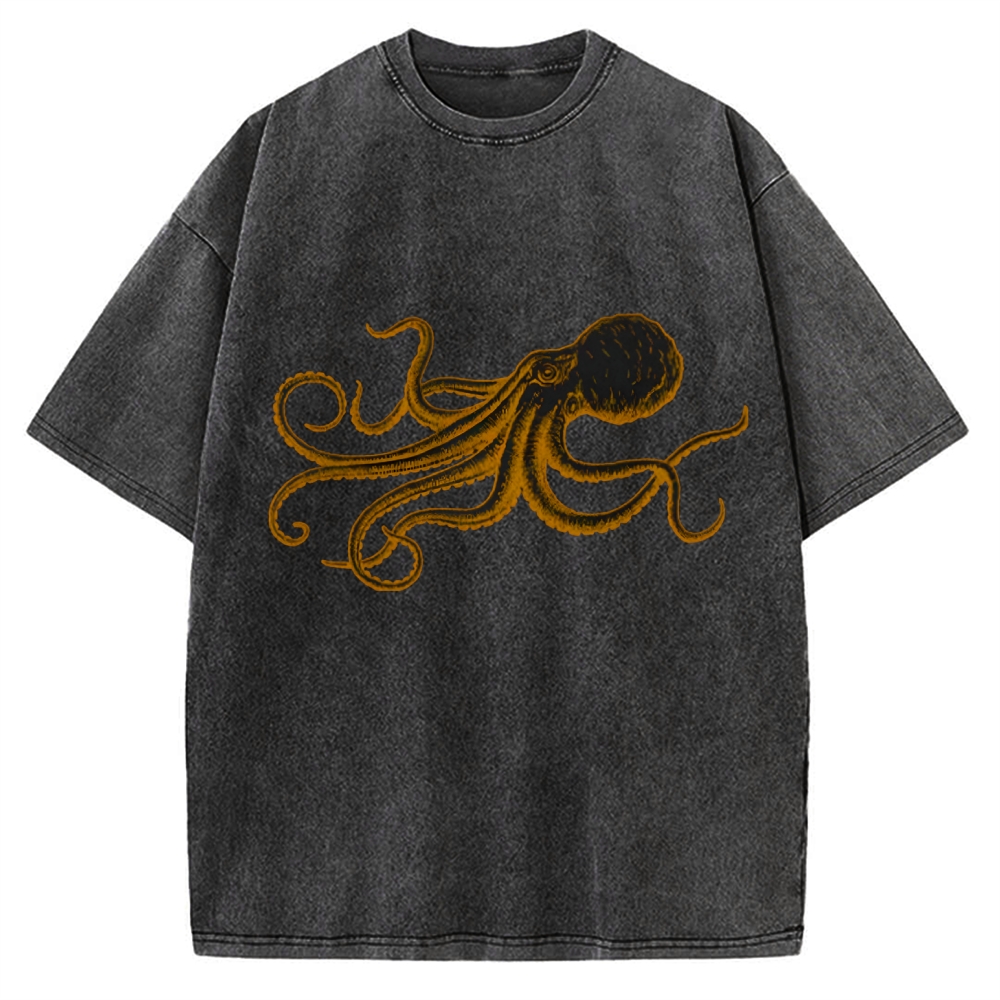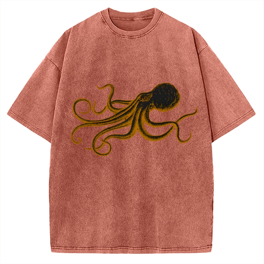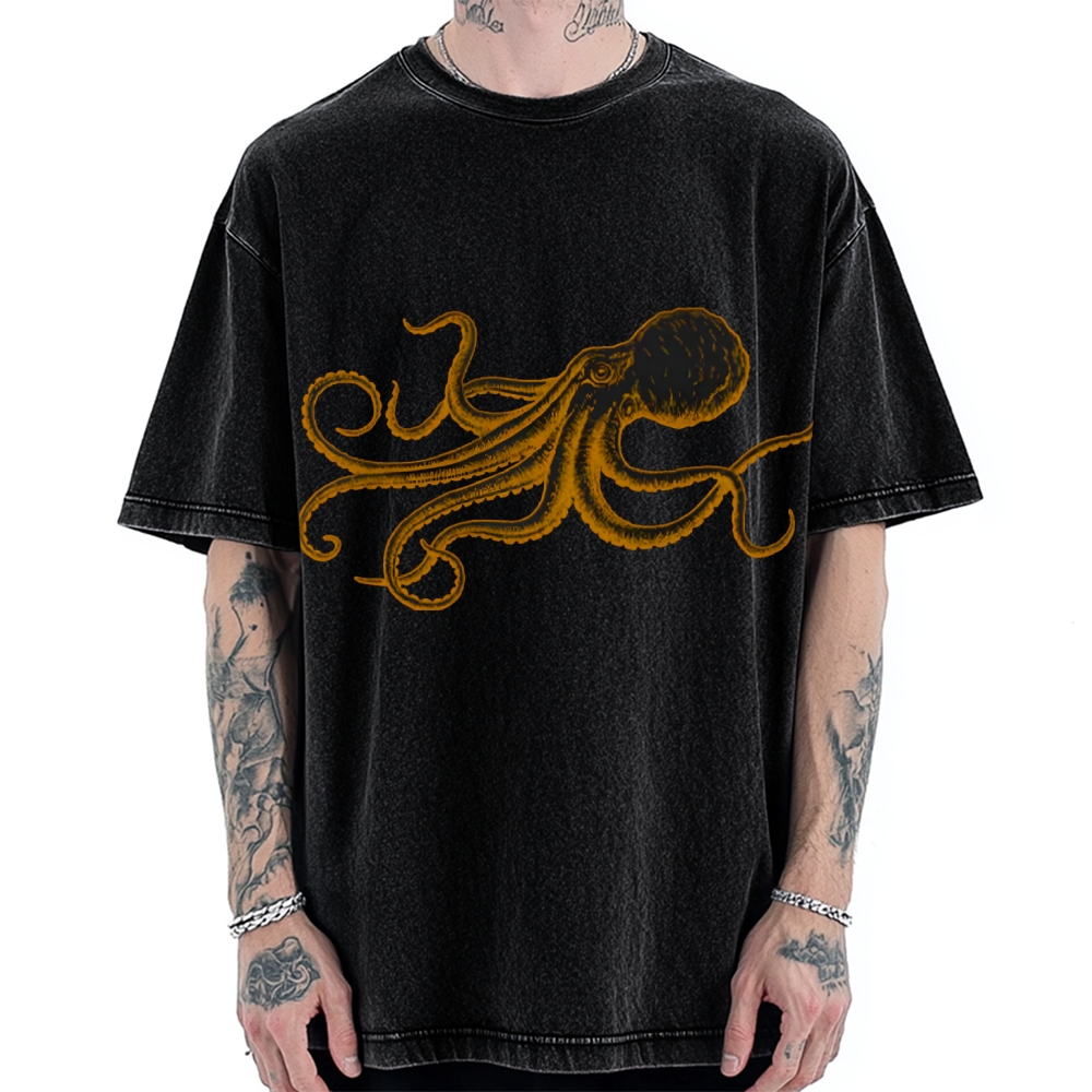 Octopus Japanese Calligraphy Vintage Washed T-shirt