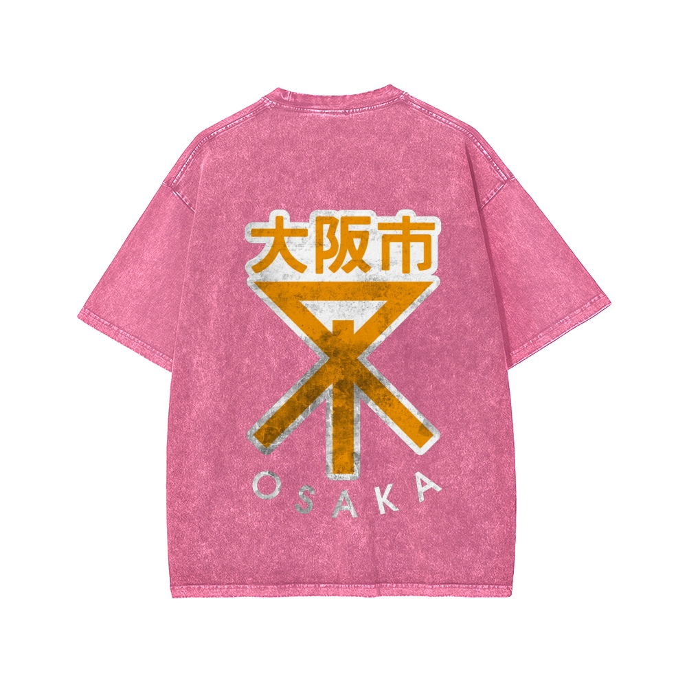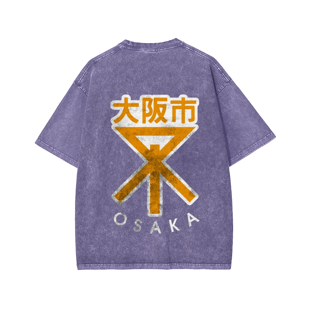 Osaka City Front Emblem And Back Printing Washed T-shirt