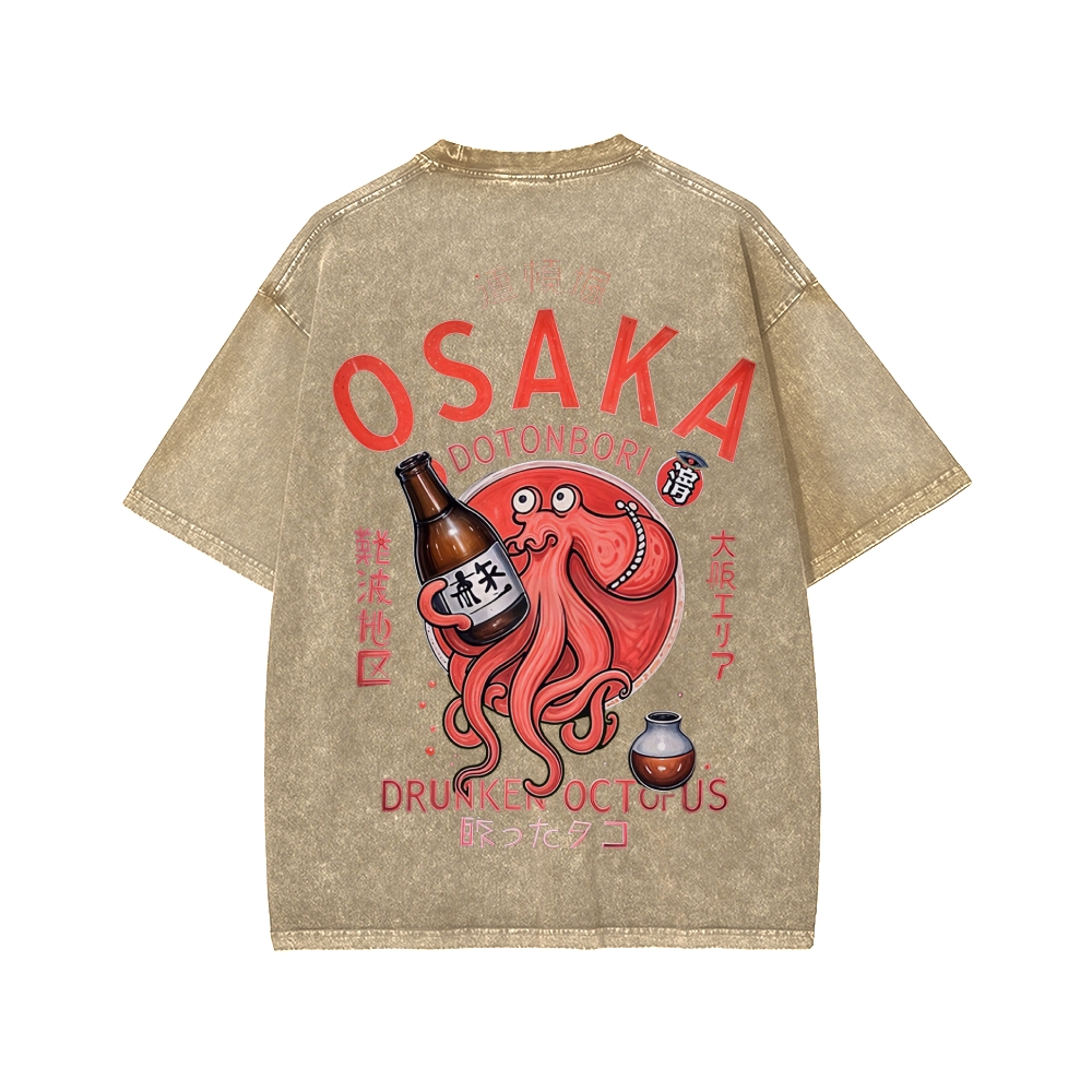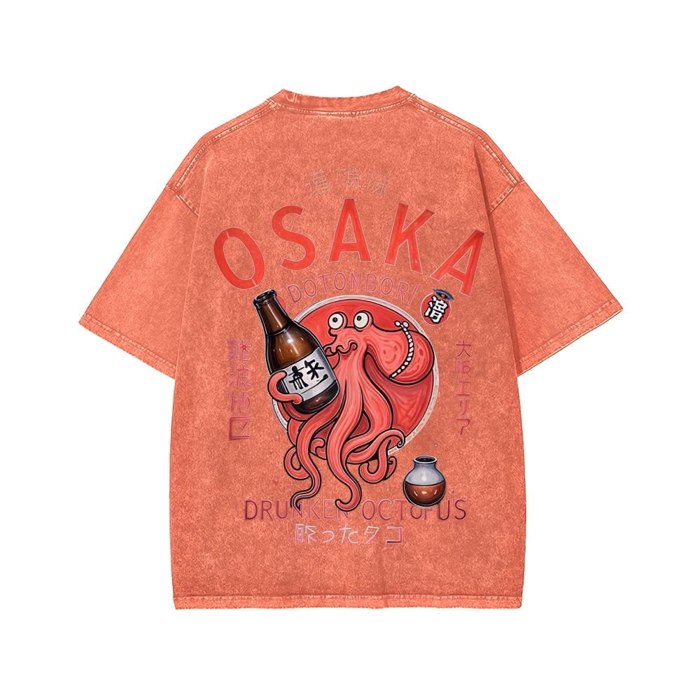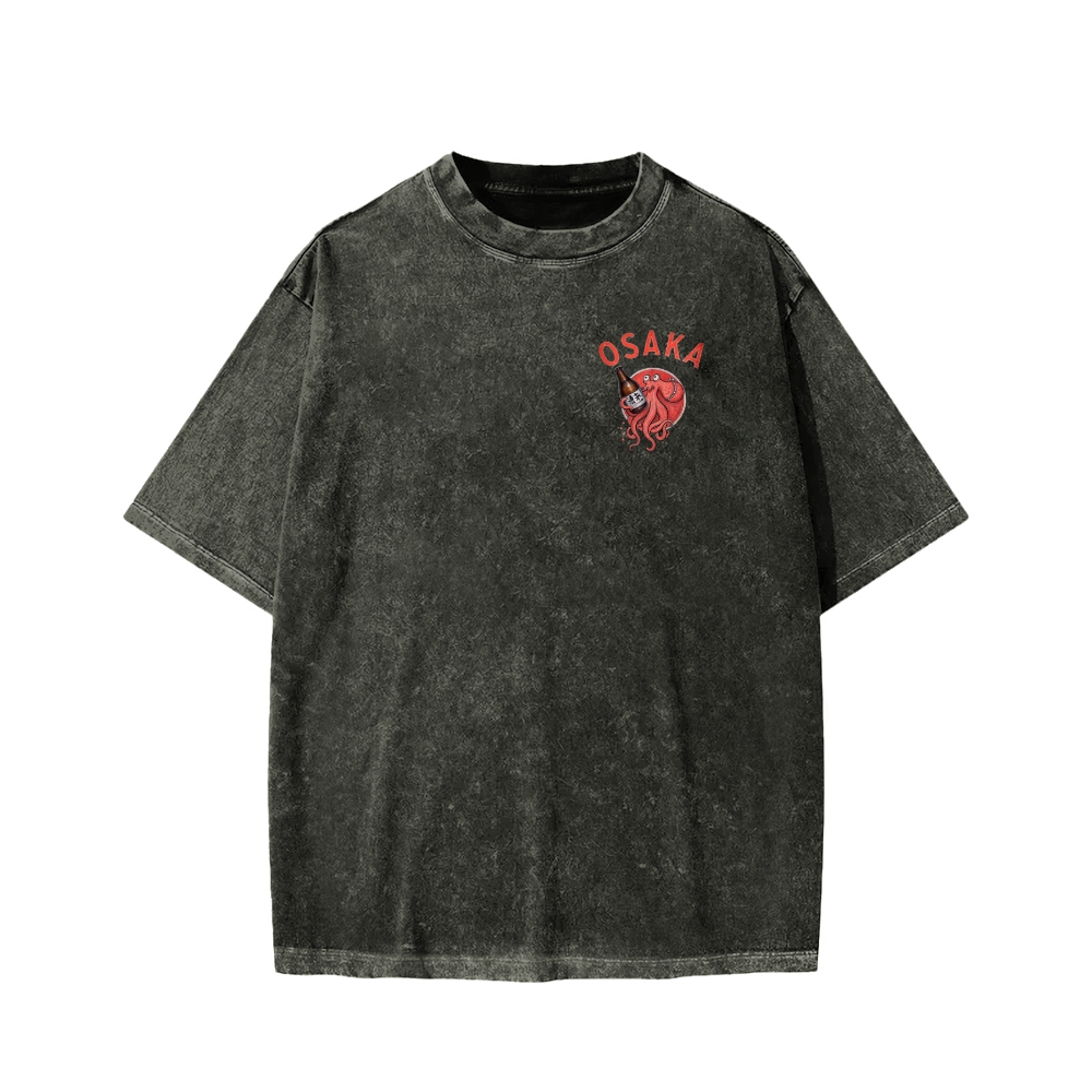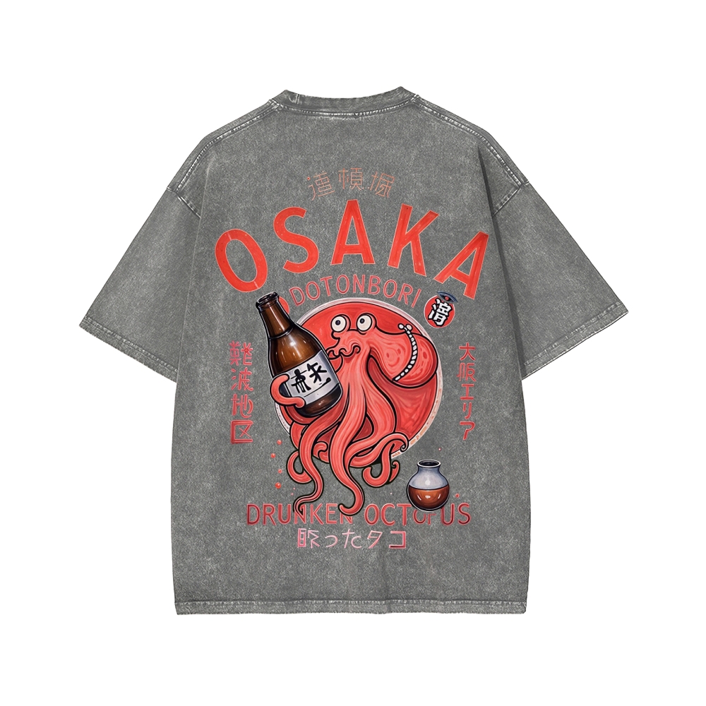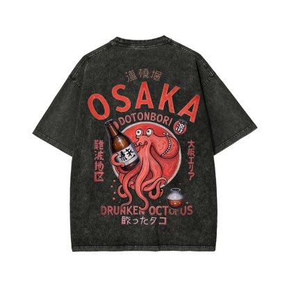 Osaka Drunken Octopus Front And Back Printing Washed T-shirt