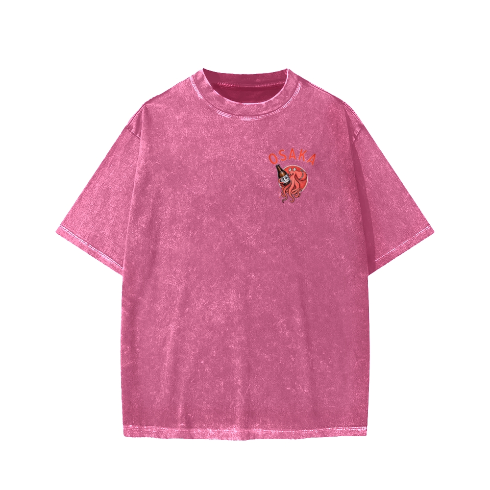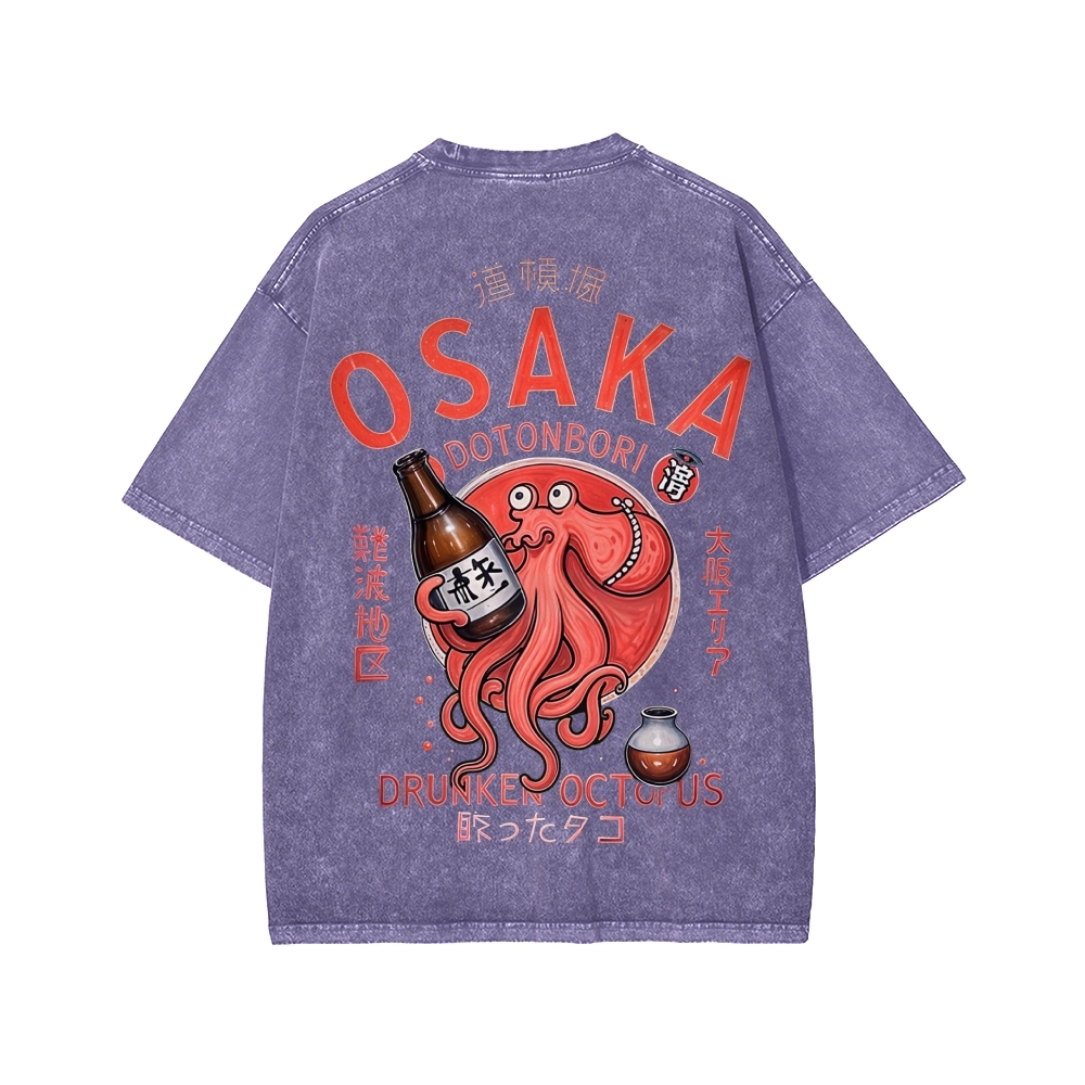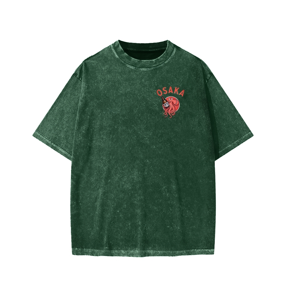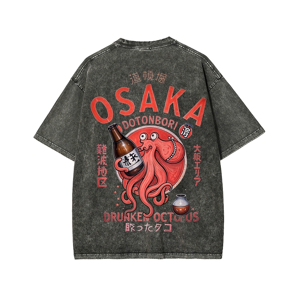 Osaka Drunken Octopus Front And Back Printing Washed T-shirt