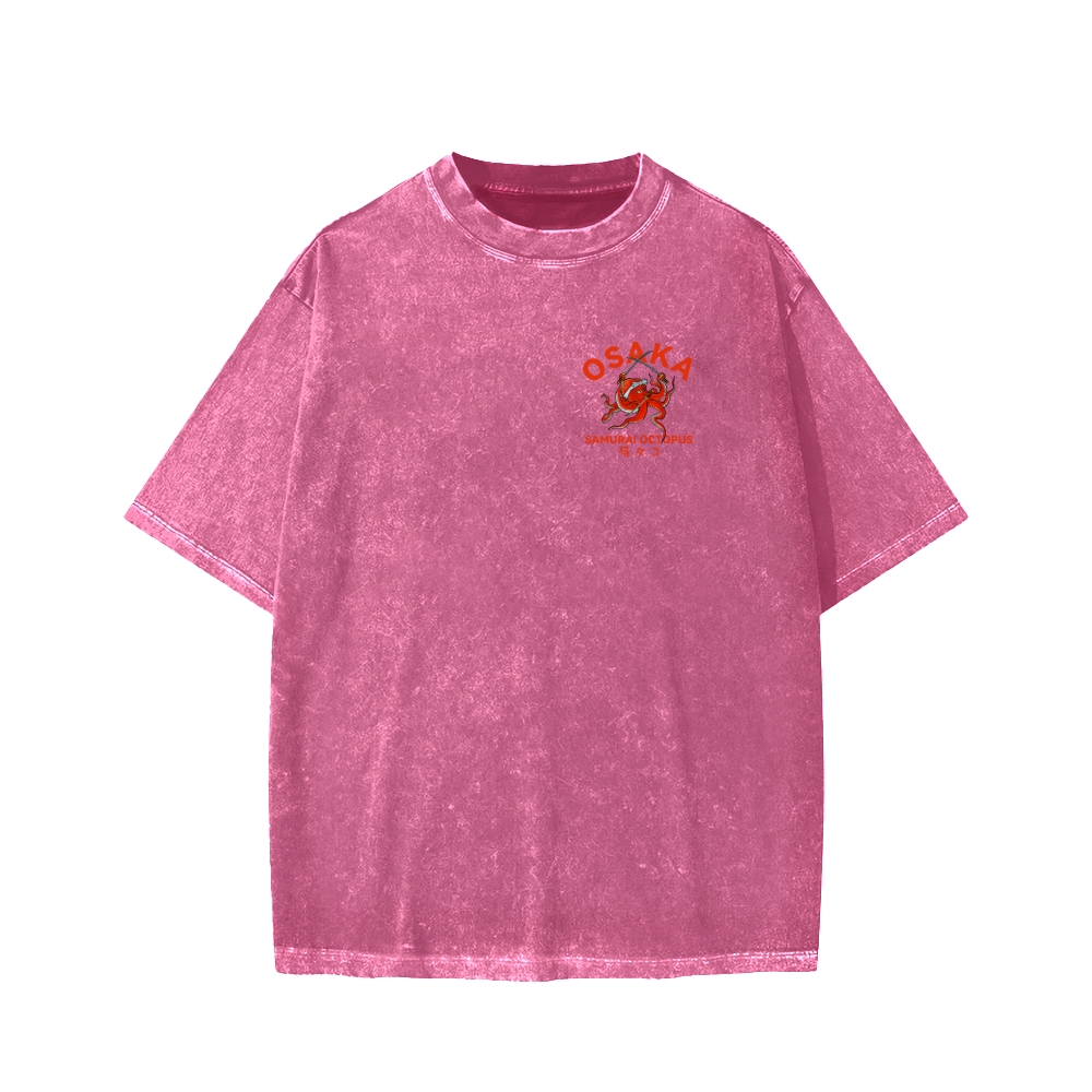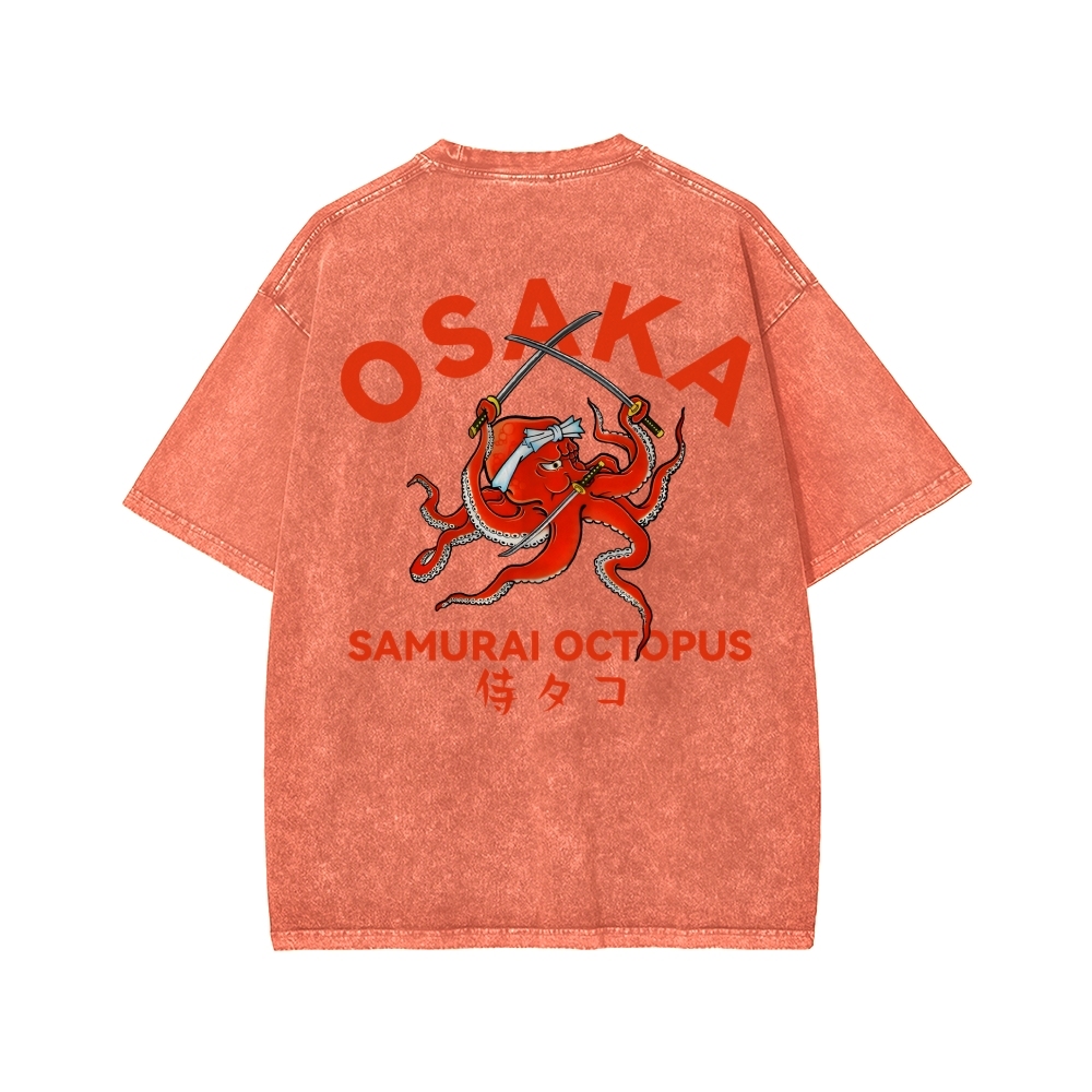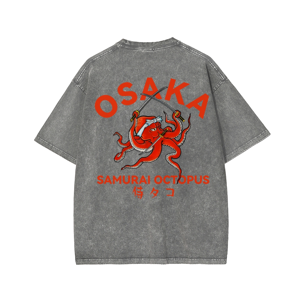 Samurai Octopus Front And Back Printing Washed T-shirt