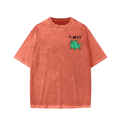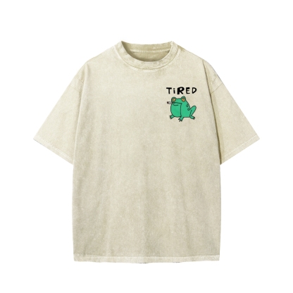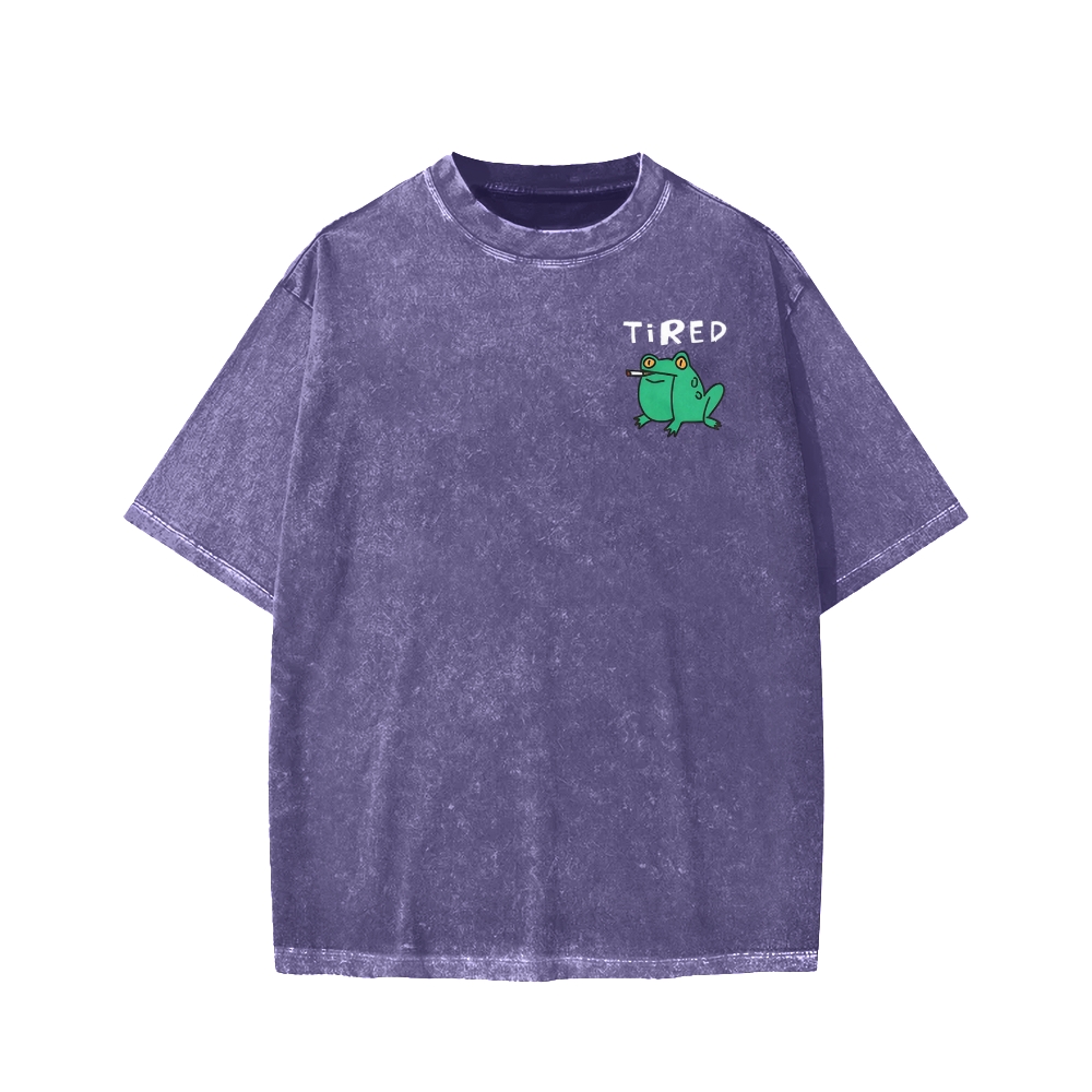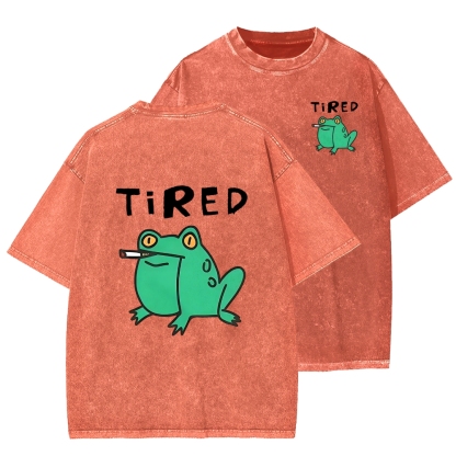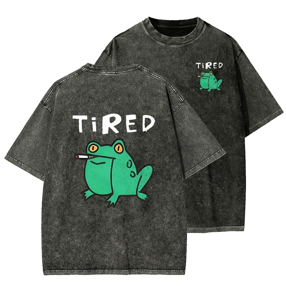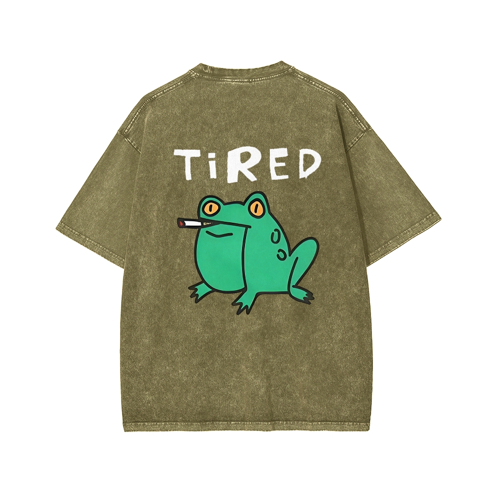 Smoking Frog Front And Back Printing Washed T-shirt