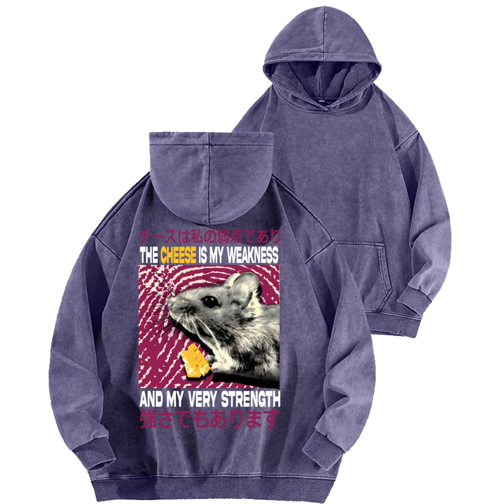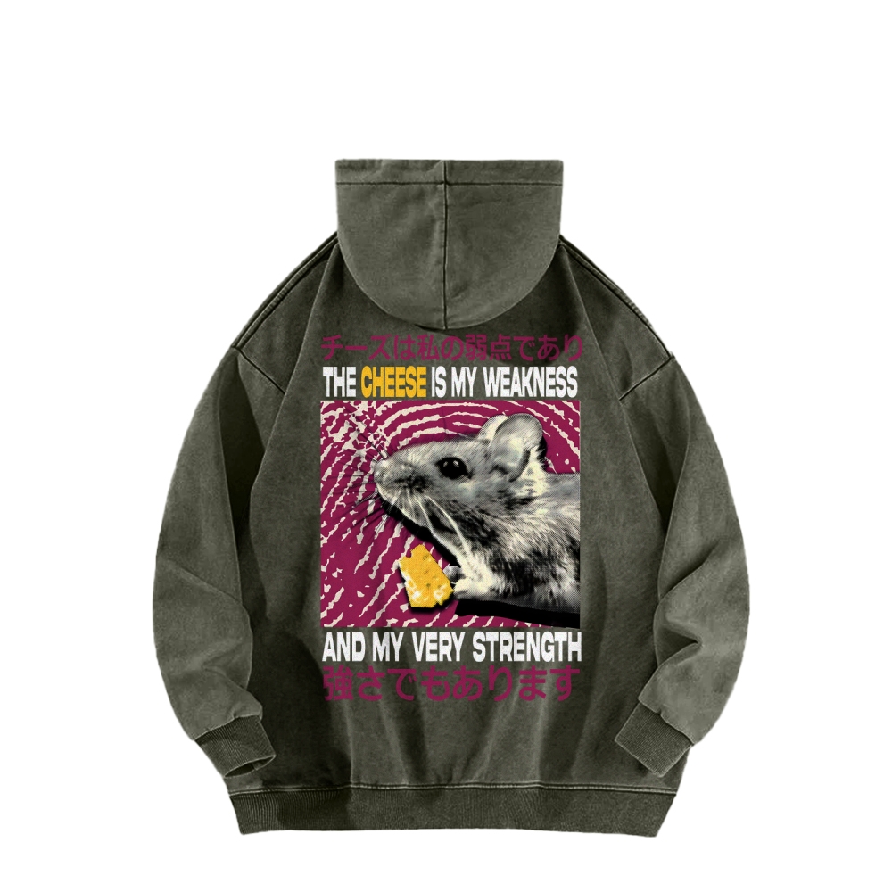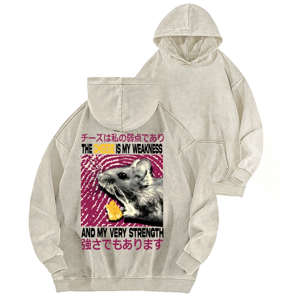 The Cheese Is My Weakness Front And Back Printing Vintage Washed Hoodie
