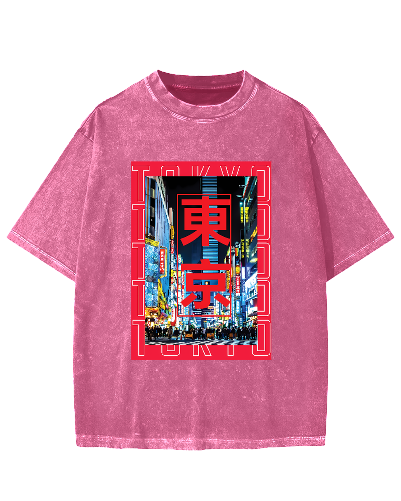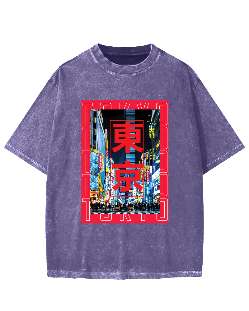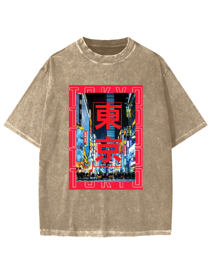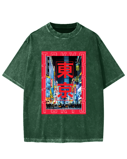 Tokyo Street Scene Vintage Washed T-shirt