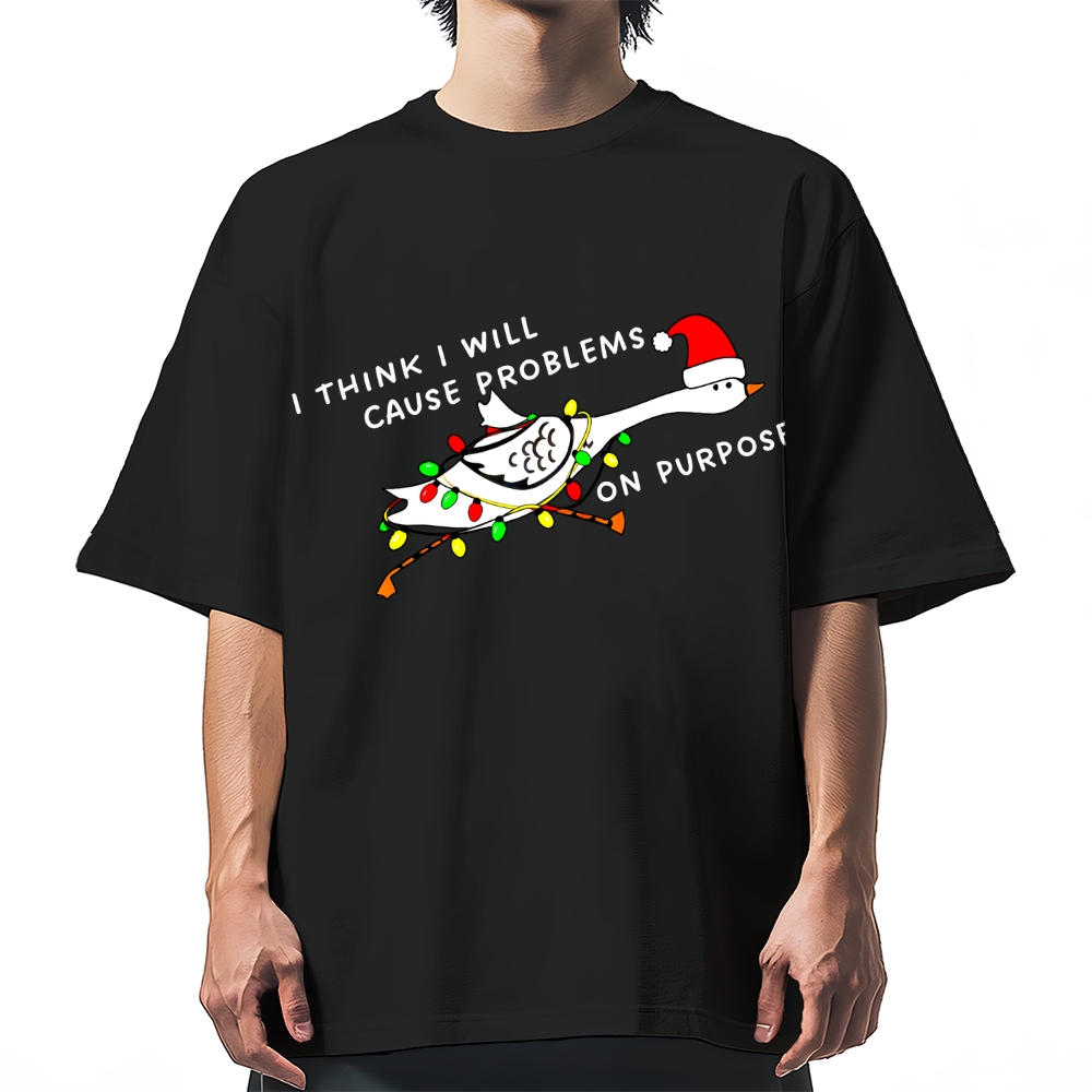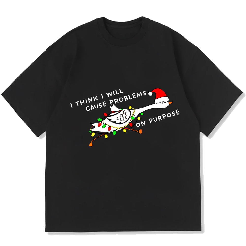 I Think I Will Cause Problems On Purpose. (Christmas Goose) Cotton casual T-shirt