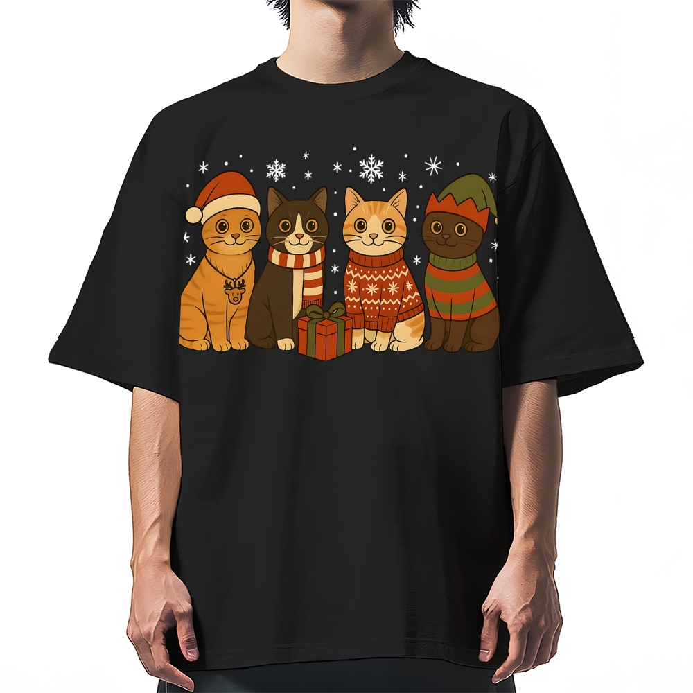 Comfort Colors Christmas Cat Funny Holiday Cotton casual T-shirt