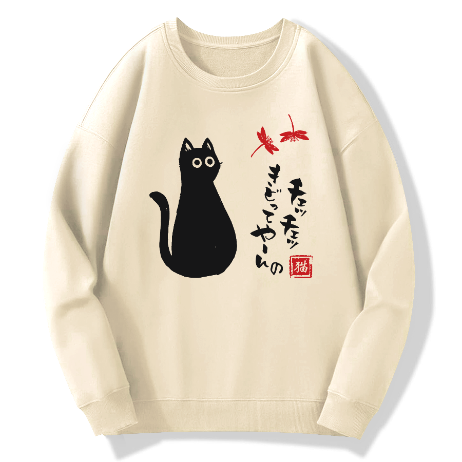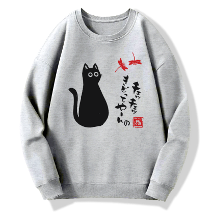 Beautiful Black Cat Dragonfly Cotton Pullover Sweatshirt