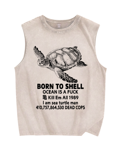 Born To Shell Vintage Distressed Washed Tank Top