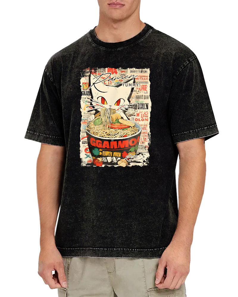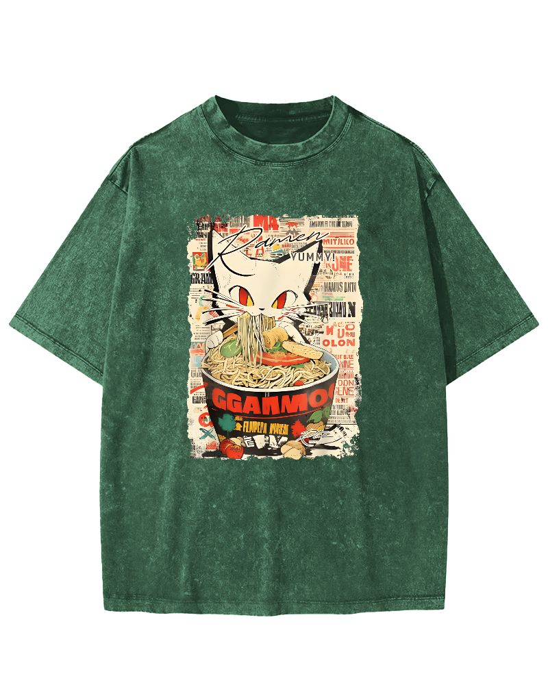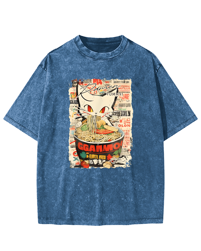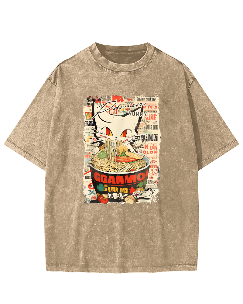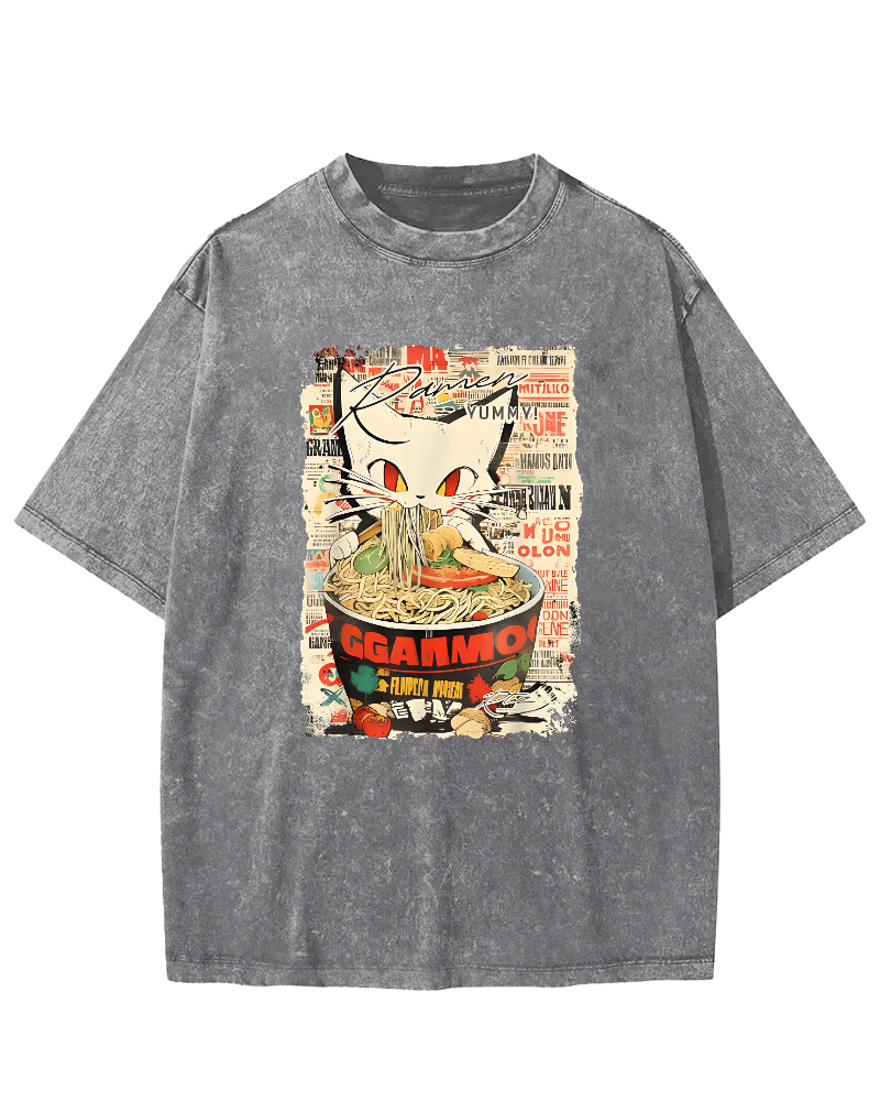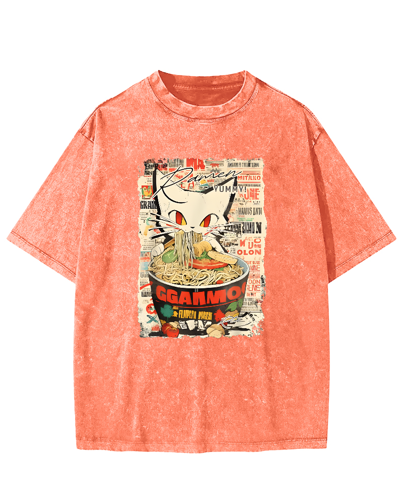 Cats and Food Japanese Retro Vintage Washed T-shirt