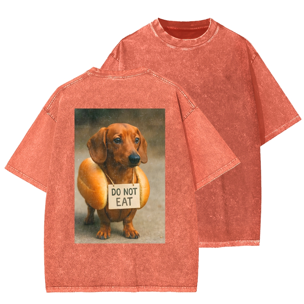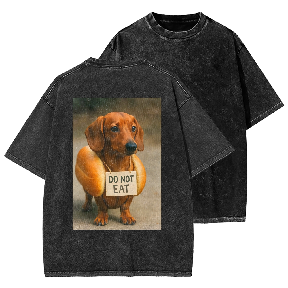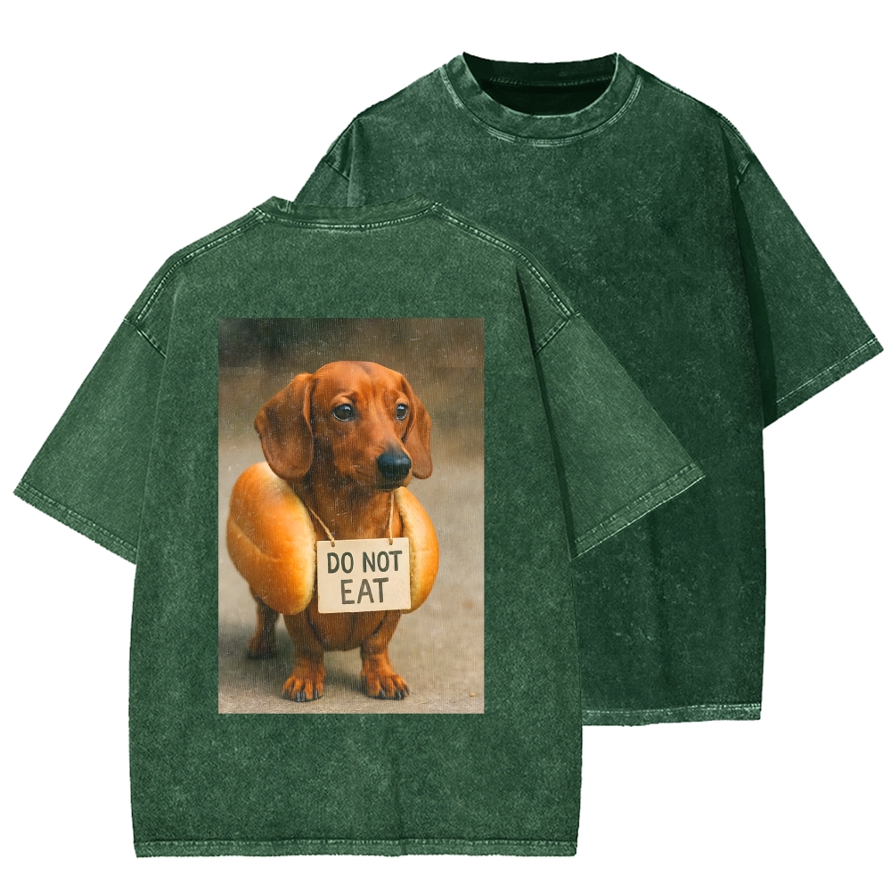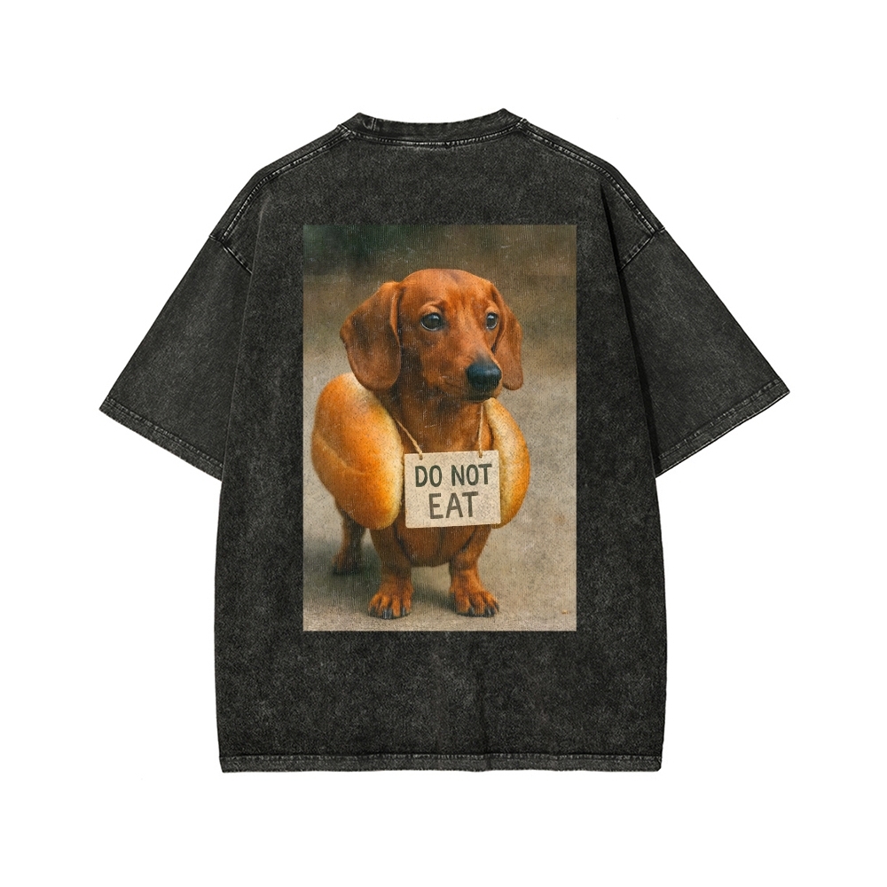 Funny And Humorous Dachshund Front And Back Printing Washed T-shirt