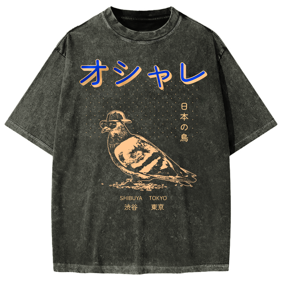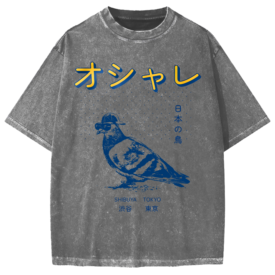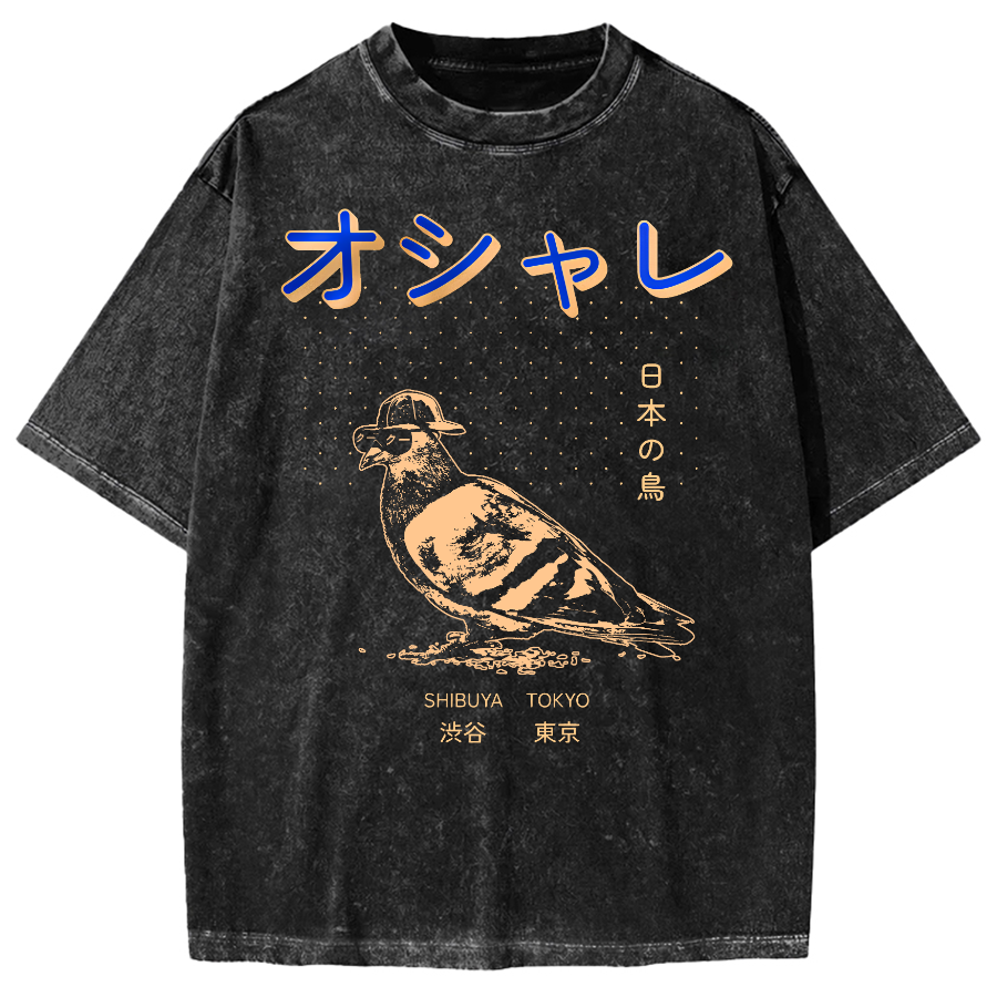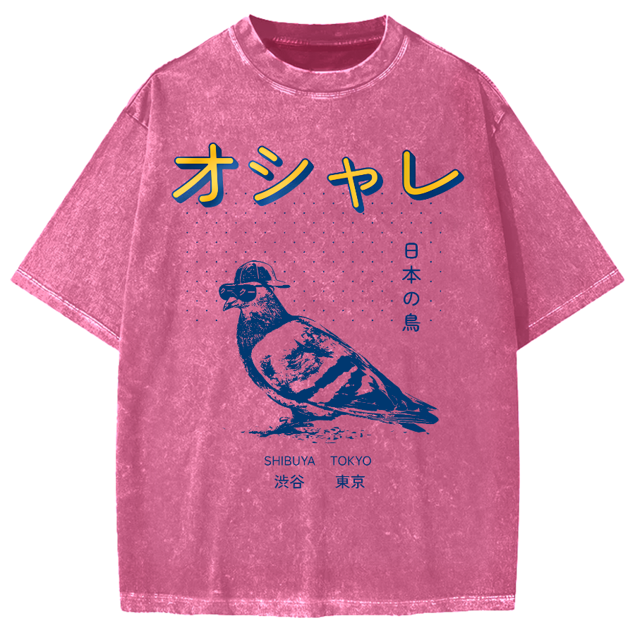 Japanese Pop Art Bird Vintage Washed T-shirt