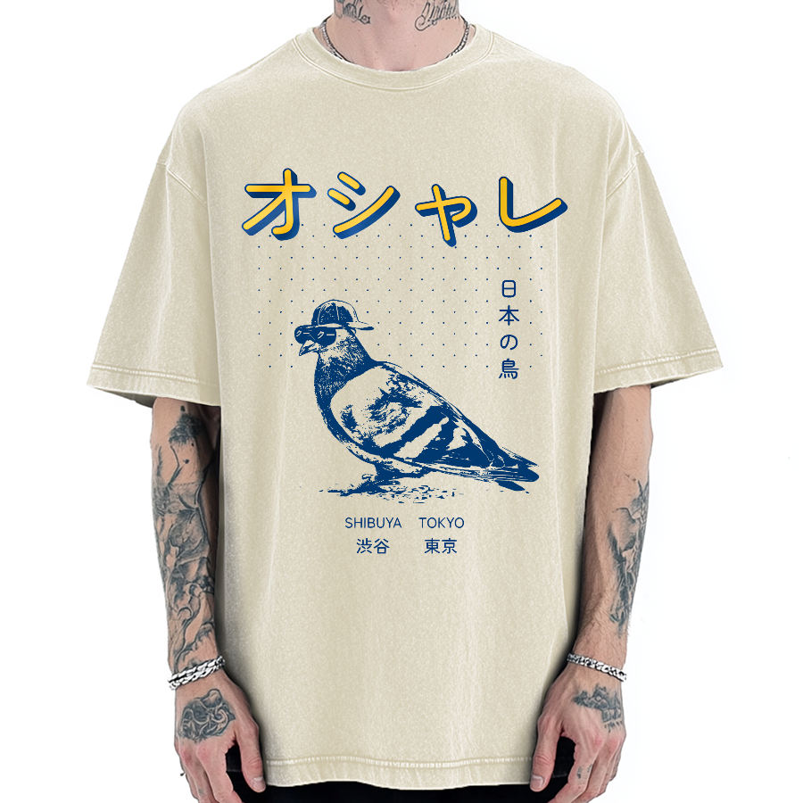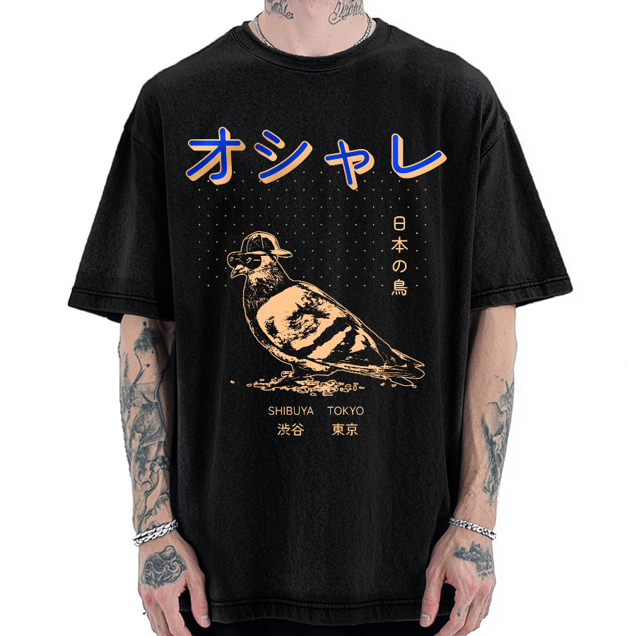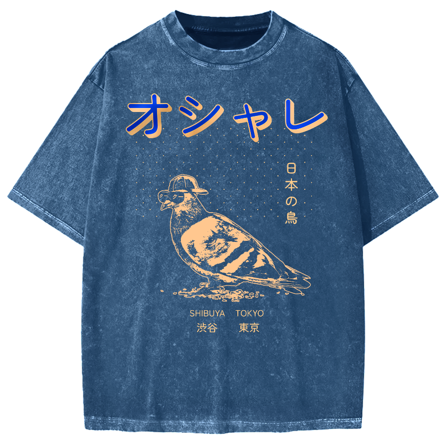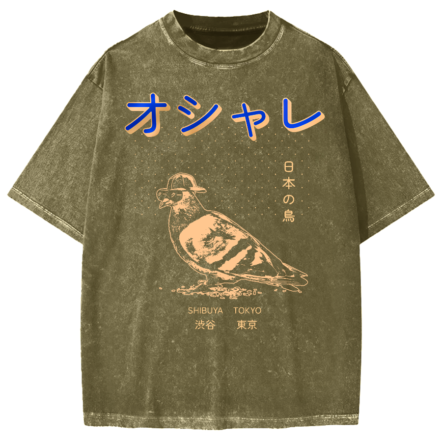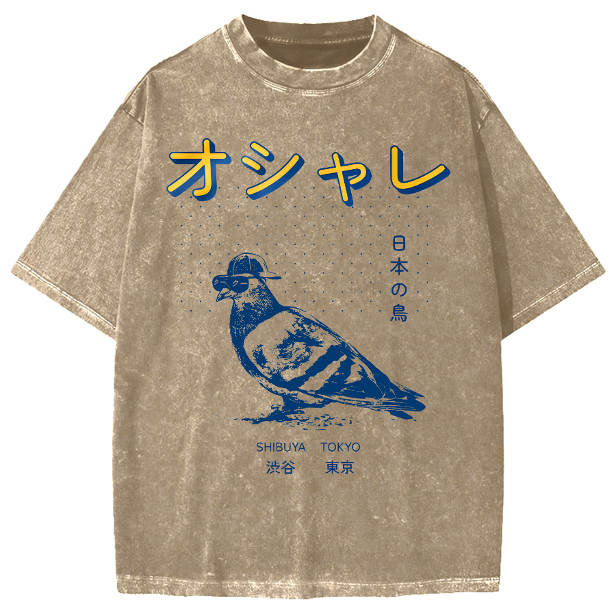 Japanese Pop Art Bird Vintage Washed T-shirt