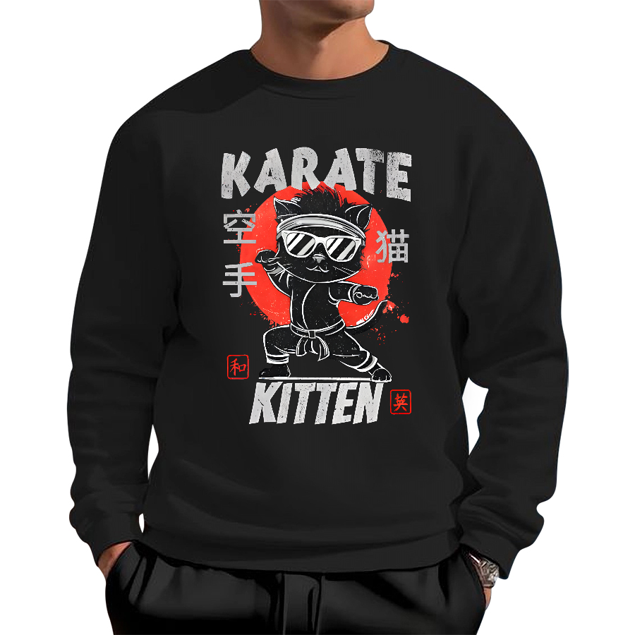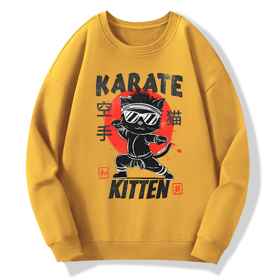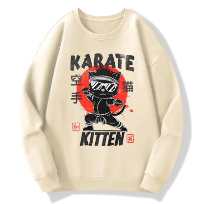 Karate Cat Cotton Pullover Sweatshirt