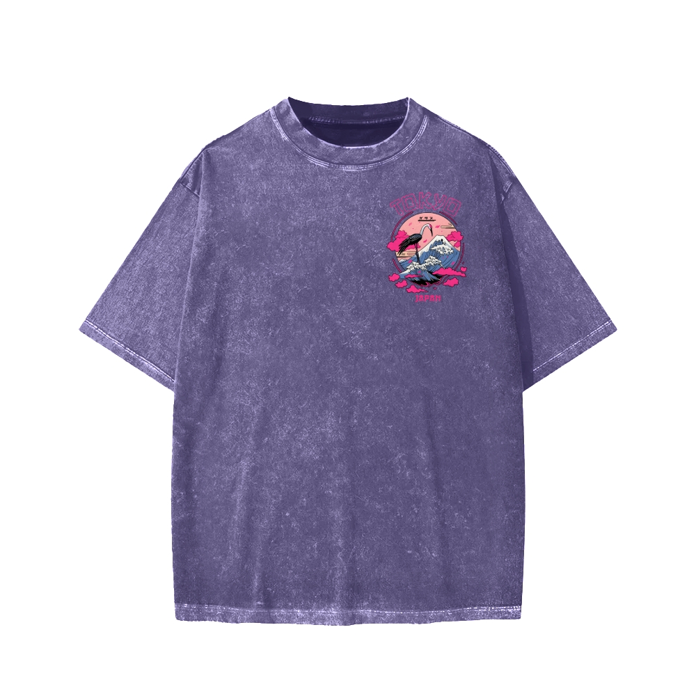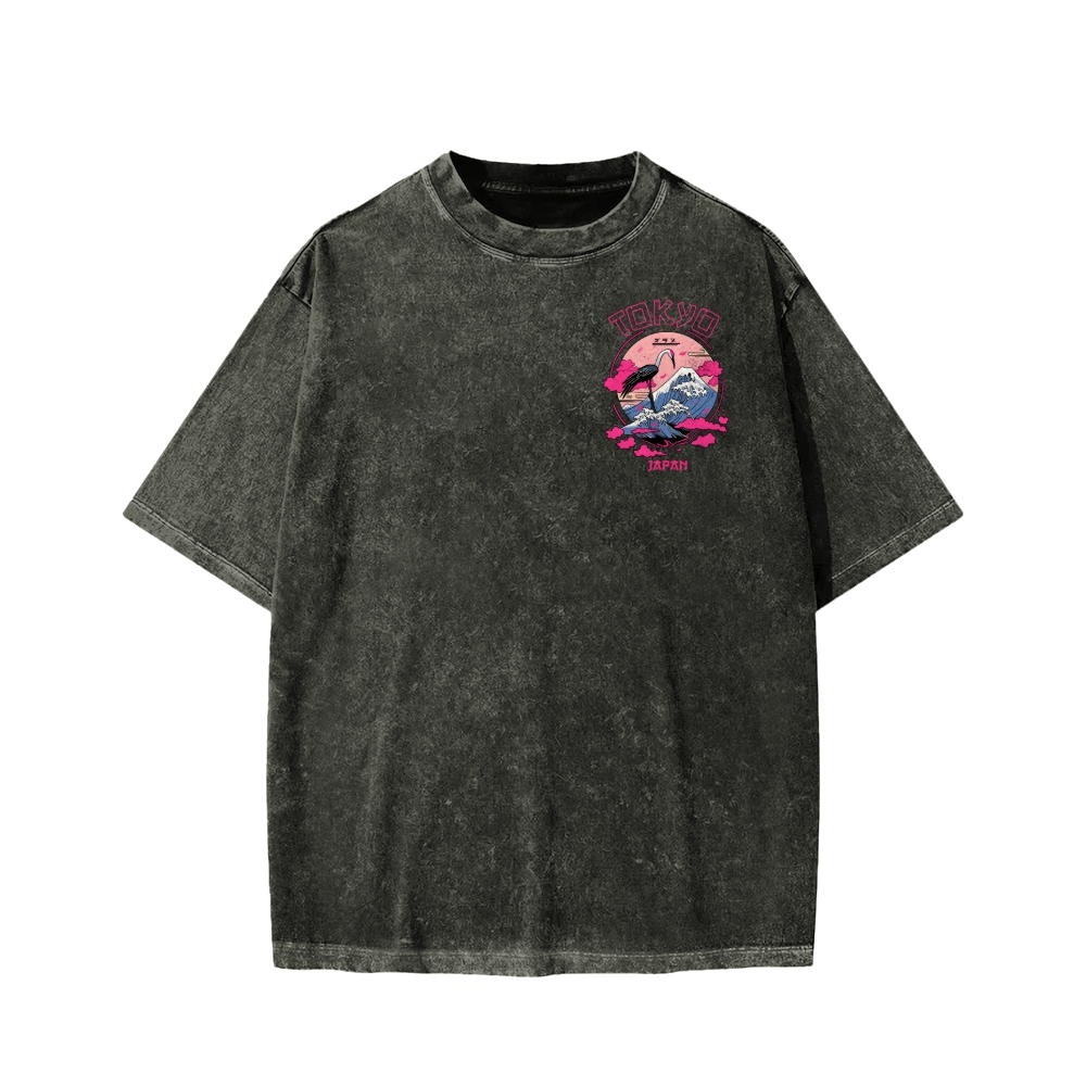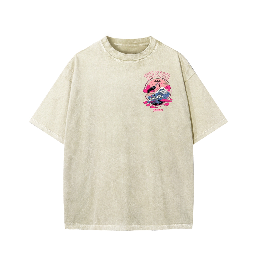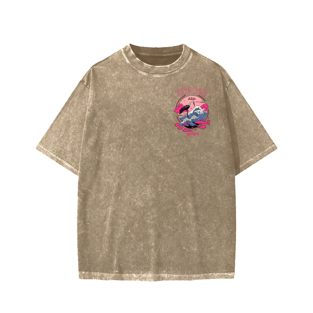 Mount Fuji in Tokyo, Japan Front And Back Printing Washed T-shirt