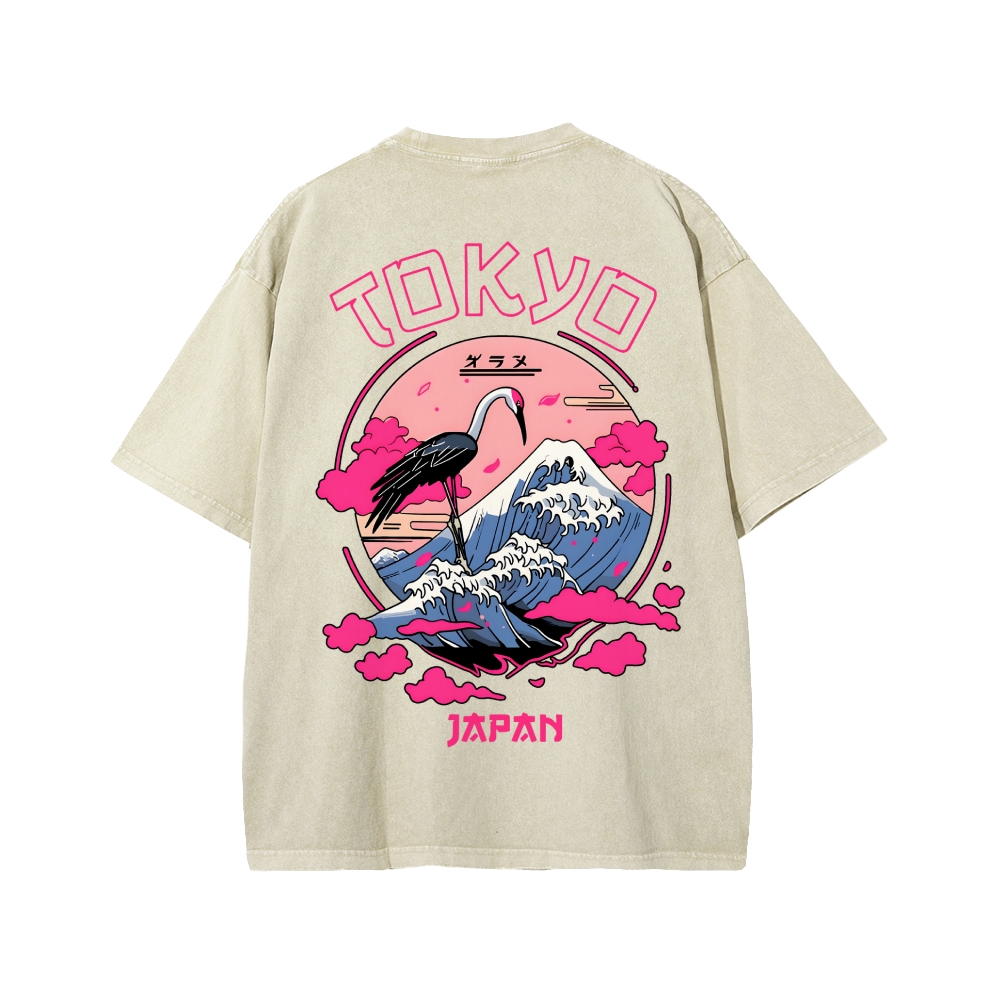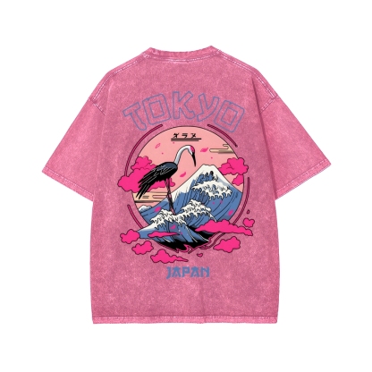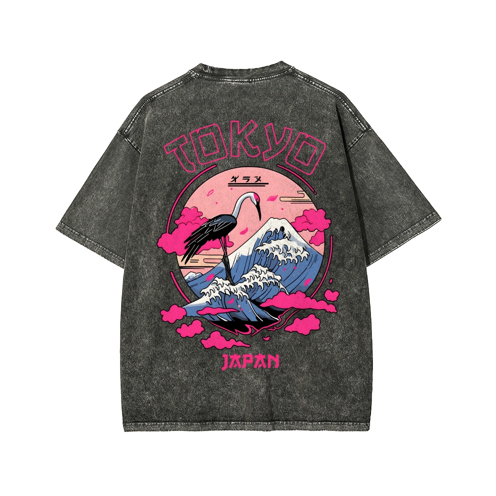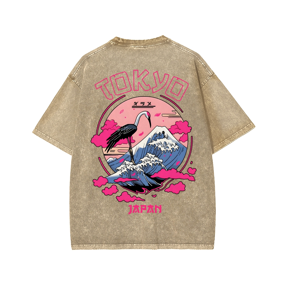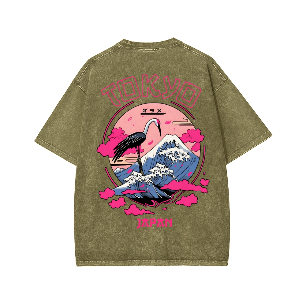 Mount Fuji in Tokyo, Japan Front And Back Printing Washed T-shirt