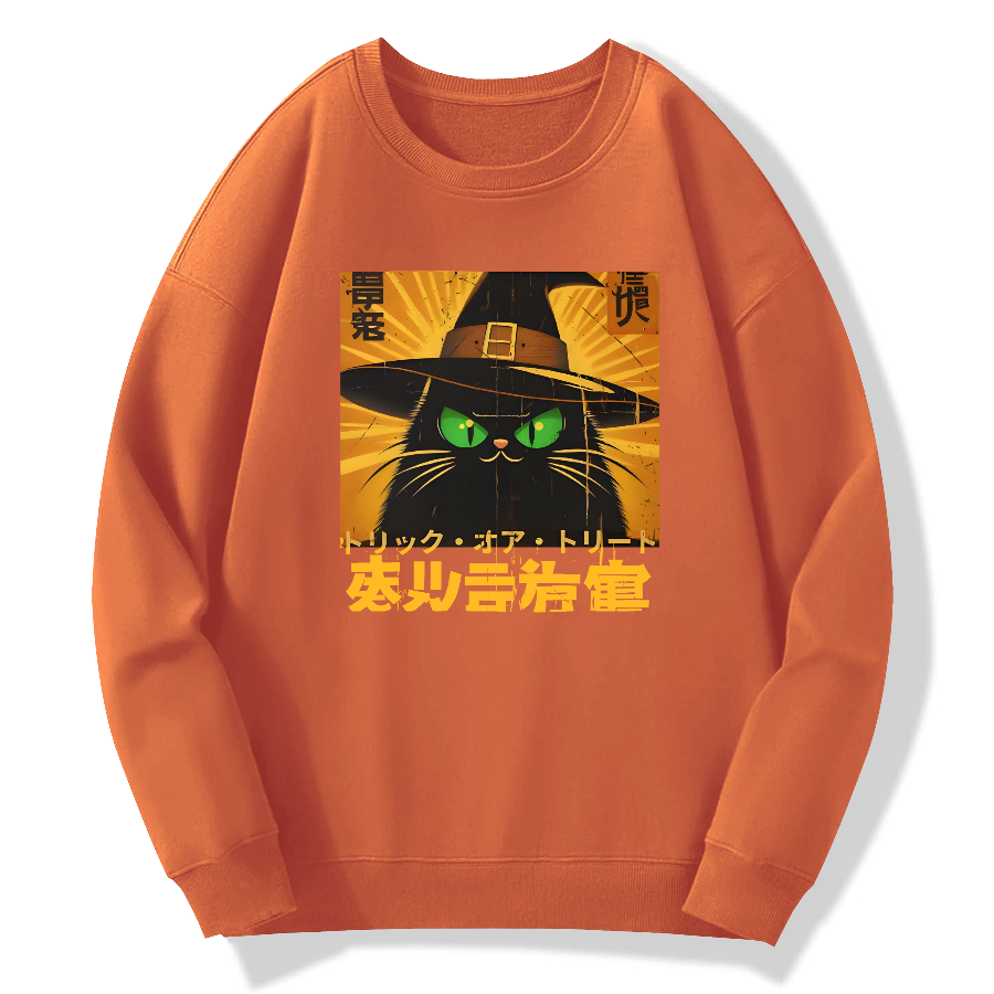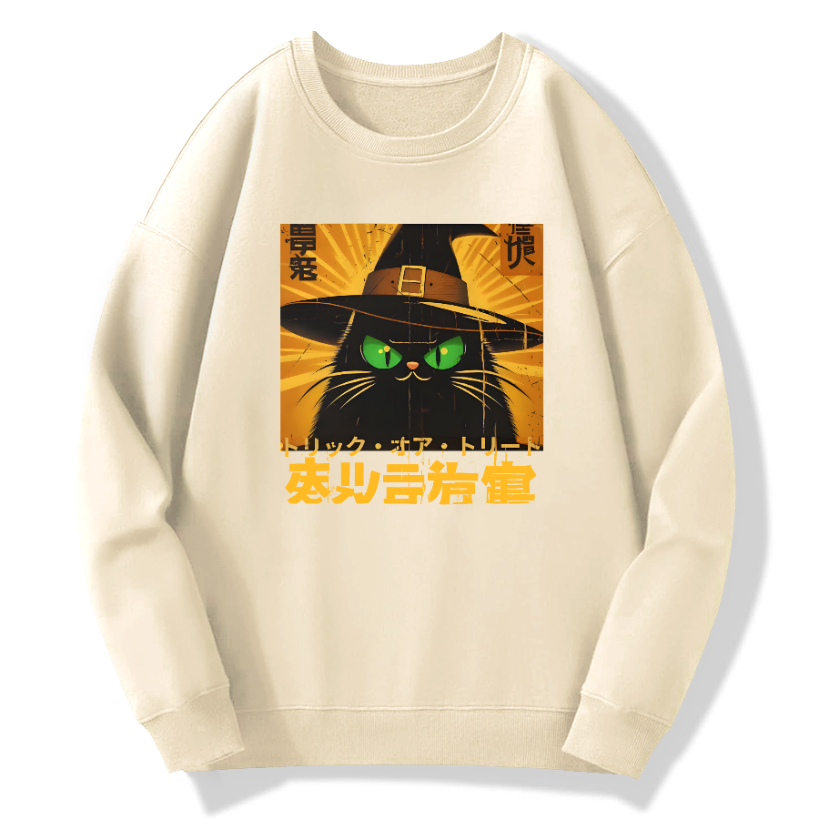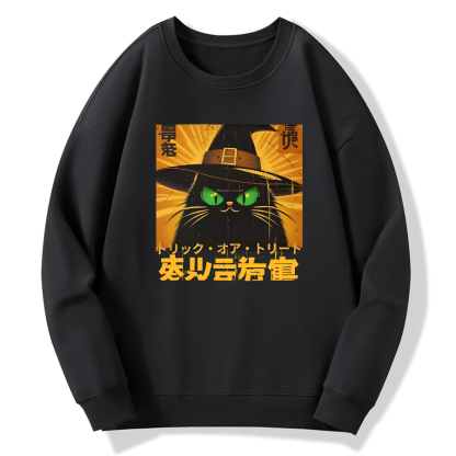 Retro Japanese Witch Cat Cotton Pullover Sweatshirt