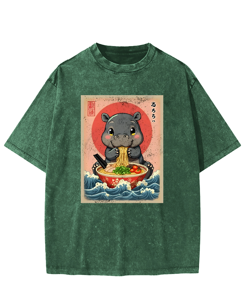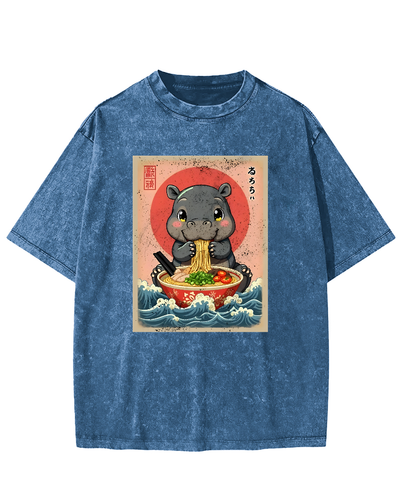 The cute little hippo eats Lamian Noodles Vintage Washed T-shirt