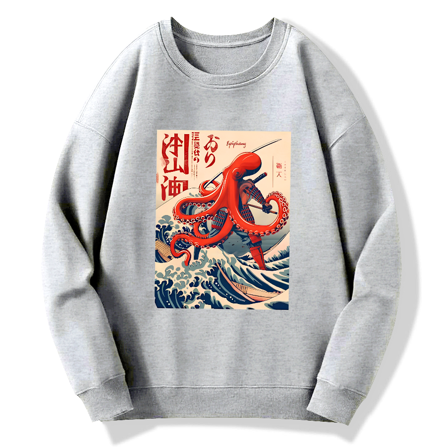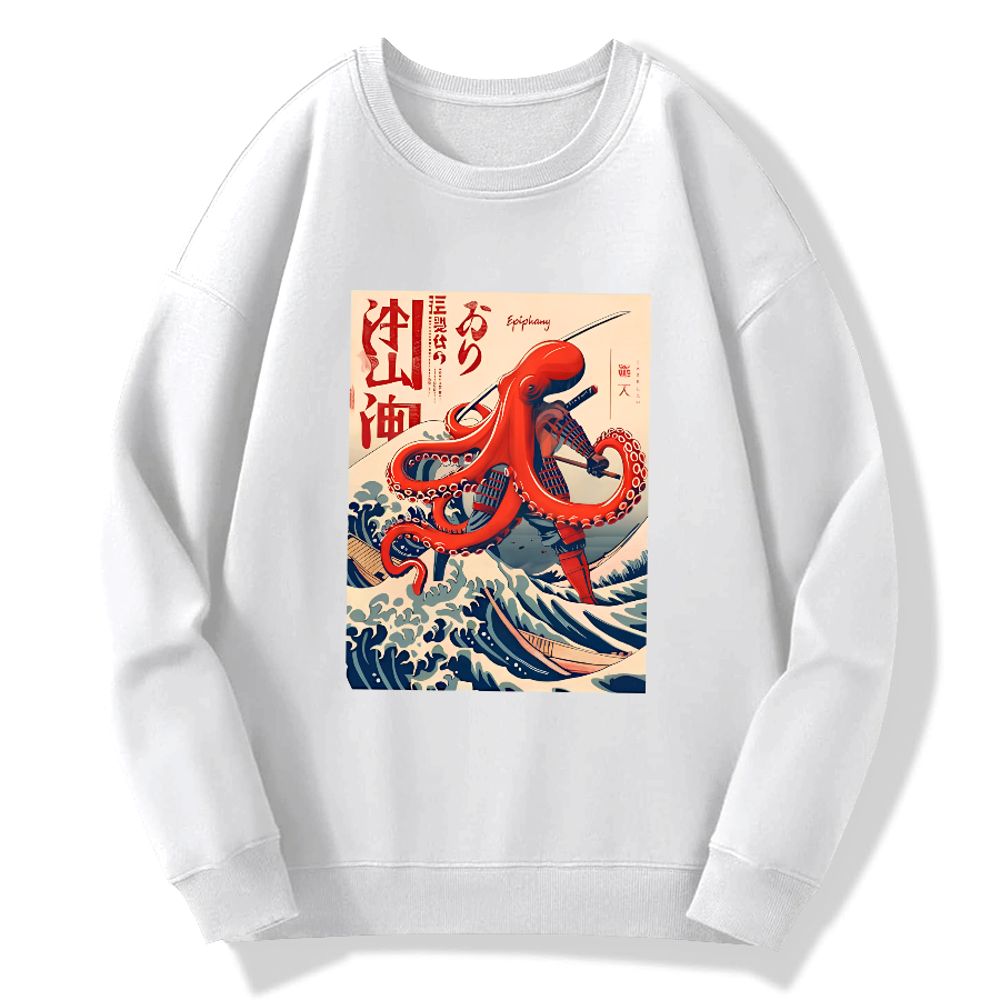 Wave Giant Octopus Cotton Pullover Sweatshirt