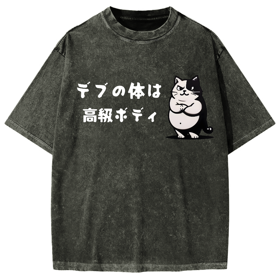 “デブの体は高級ボディ Tシャツ”Vintage Washed T-shirt