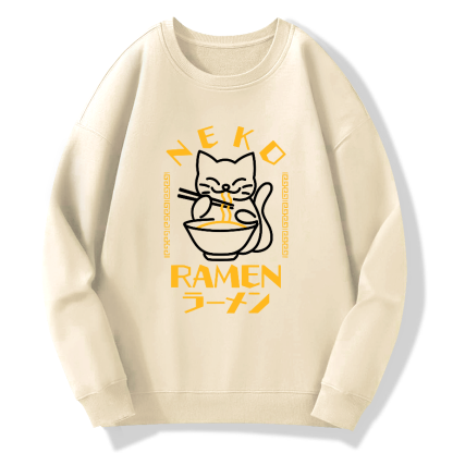 Cats who like Lamian Noodles Cotton Pullover Sweatshirt