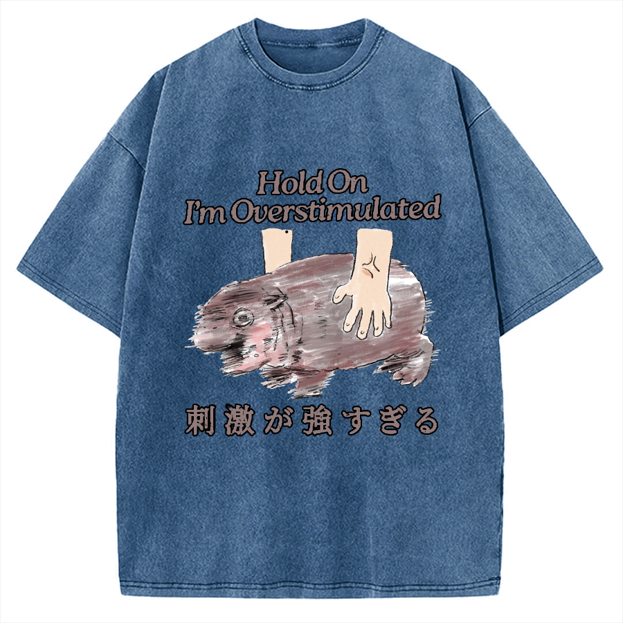 Hippo Hold On Partner I'm Overstimulated Vintage Washed T-shirt