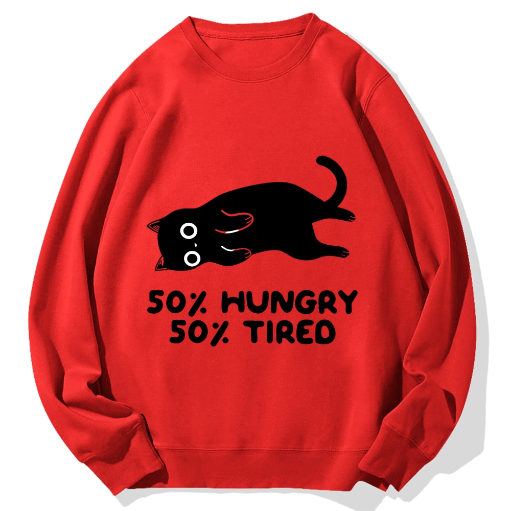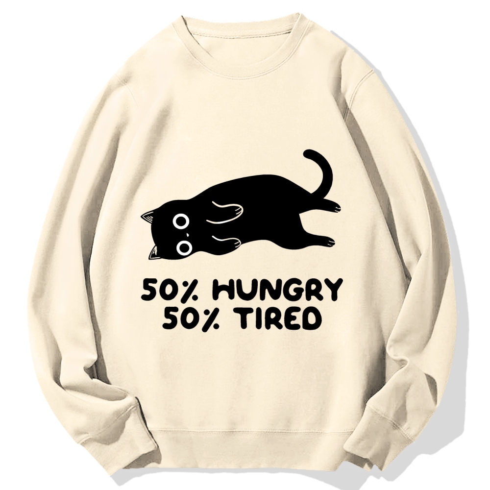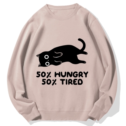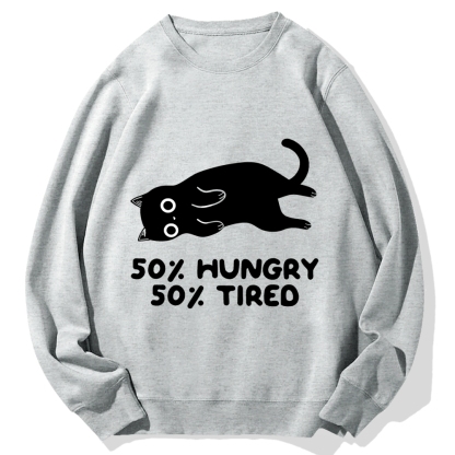 Hungry Tired Black Cat Funny Cotton Sweatshirt