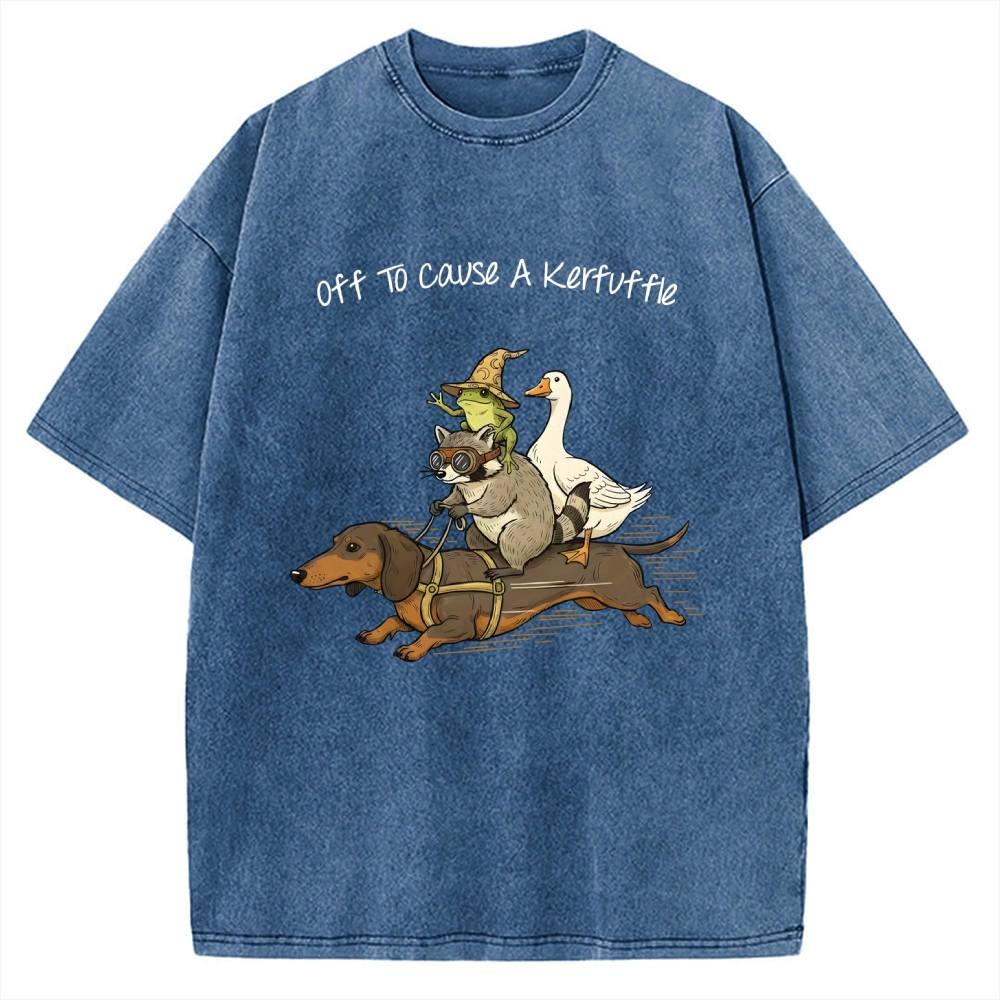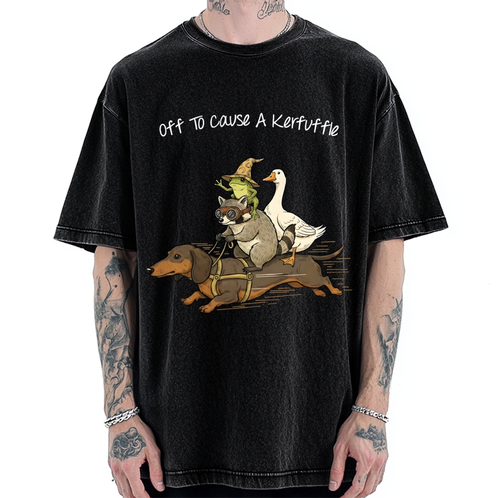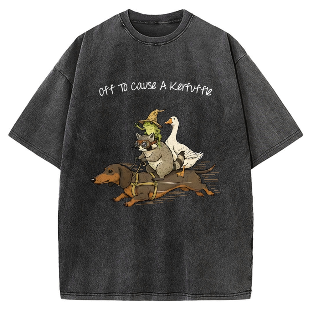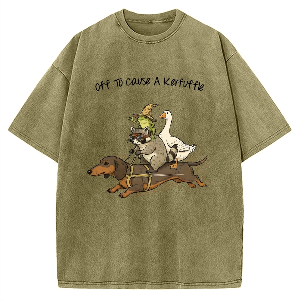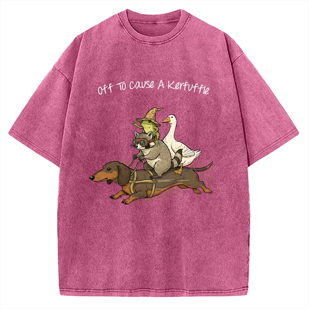 Off To Cause A Kerfuffle Shirt - Funny Dachshund-Frog Meme-Raccoon Tee -Silly Goose Vintage Washed T-shirt