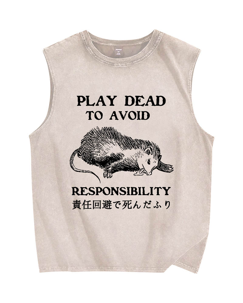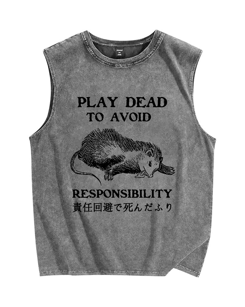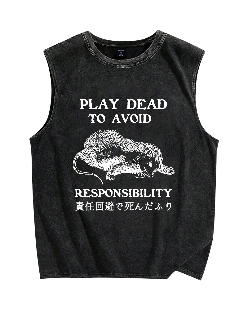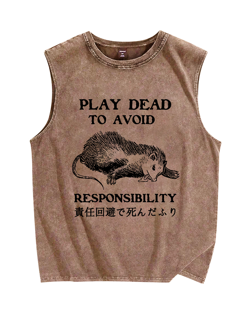 Play dead to avoid responsibility Vintage Distressed Washed Tank Top