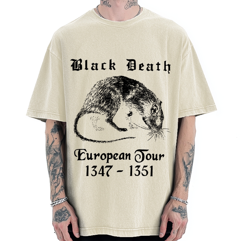 Black Death Mouse Rat Vintage Washed T-shirt