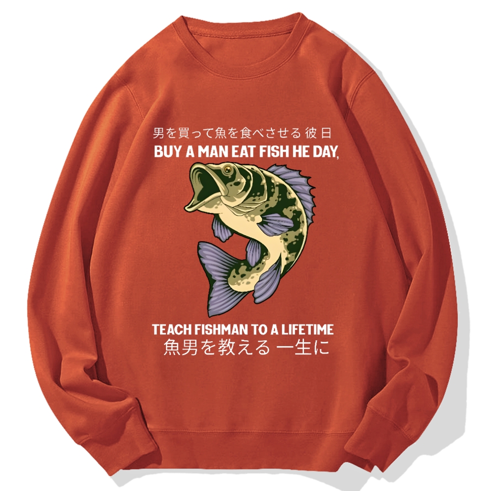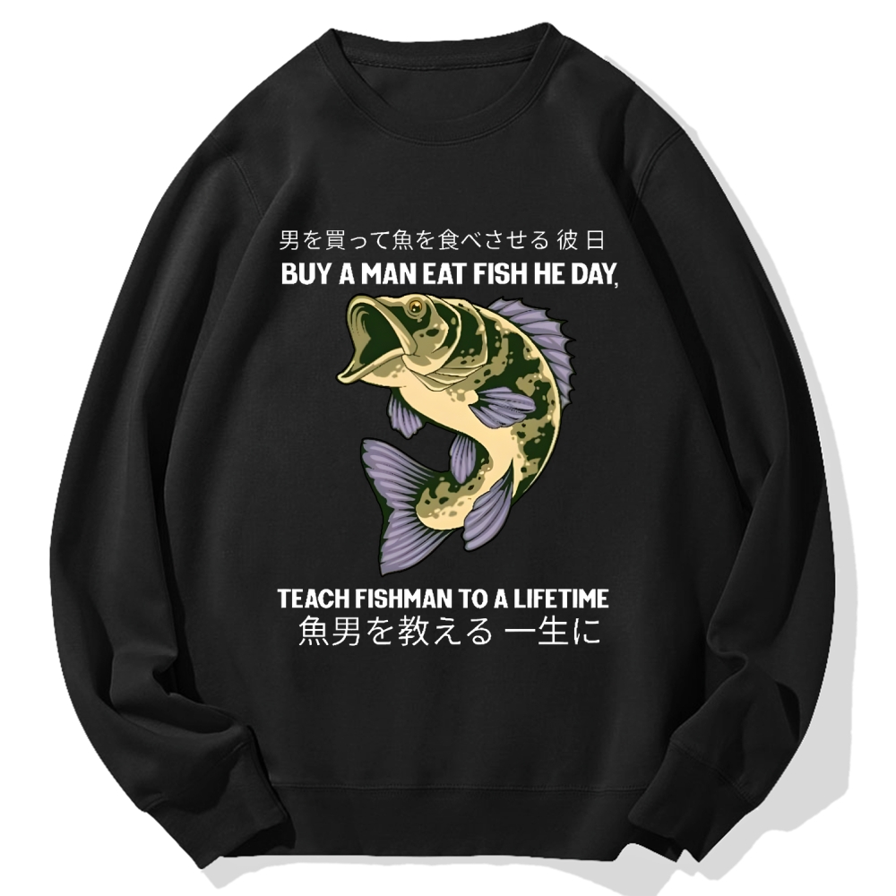 Buy A Man Eat Fish He Day, Teach Fishman To A Lifetime Cotton Sweatshirt