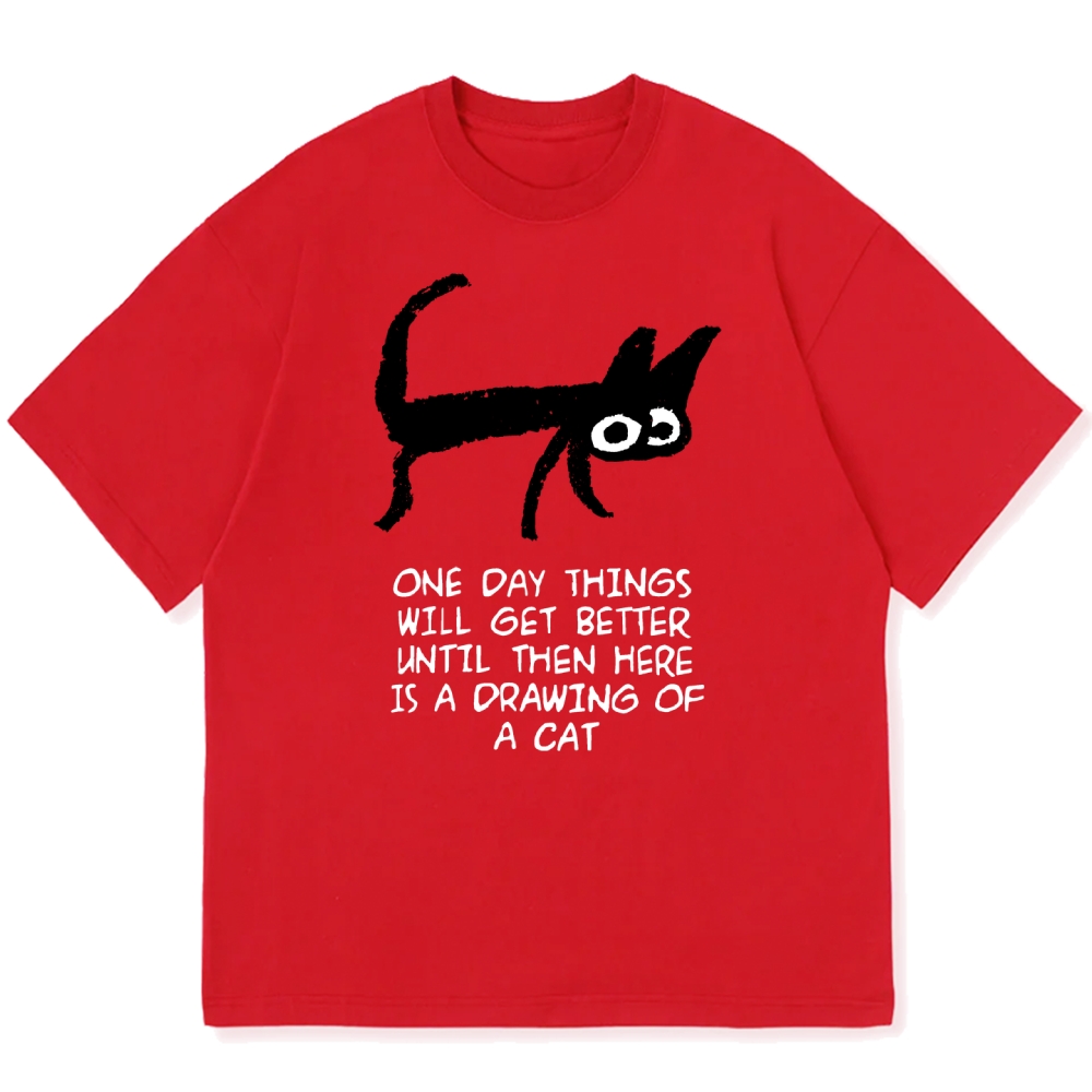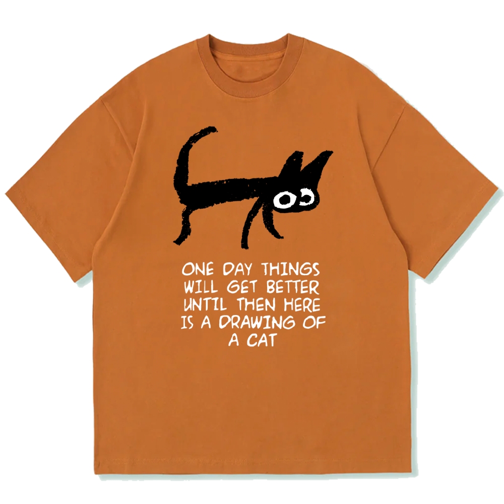Cat Cheer Up Drawing Cotton casual T-shirt