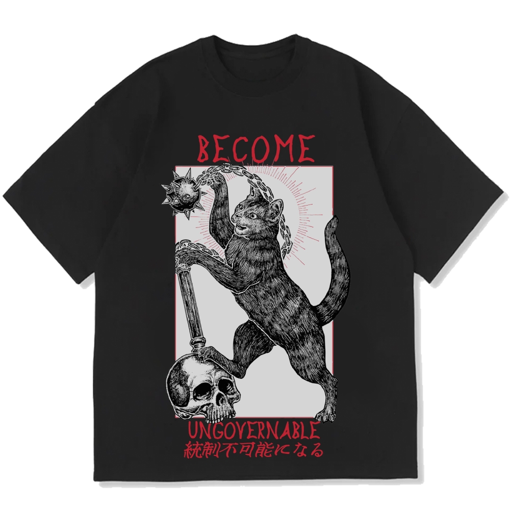Cat Wielding a Weapon Become Ungovernable Cotton casual T-shirt