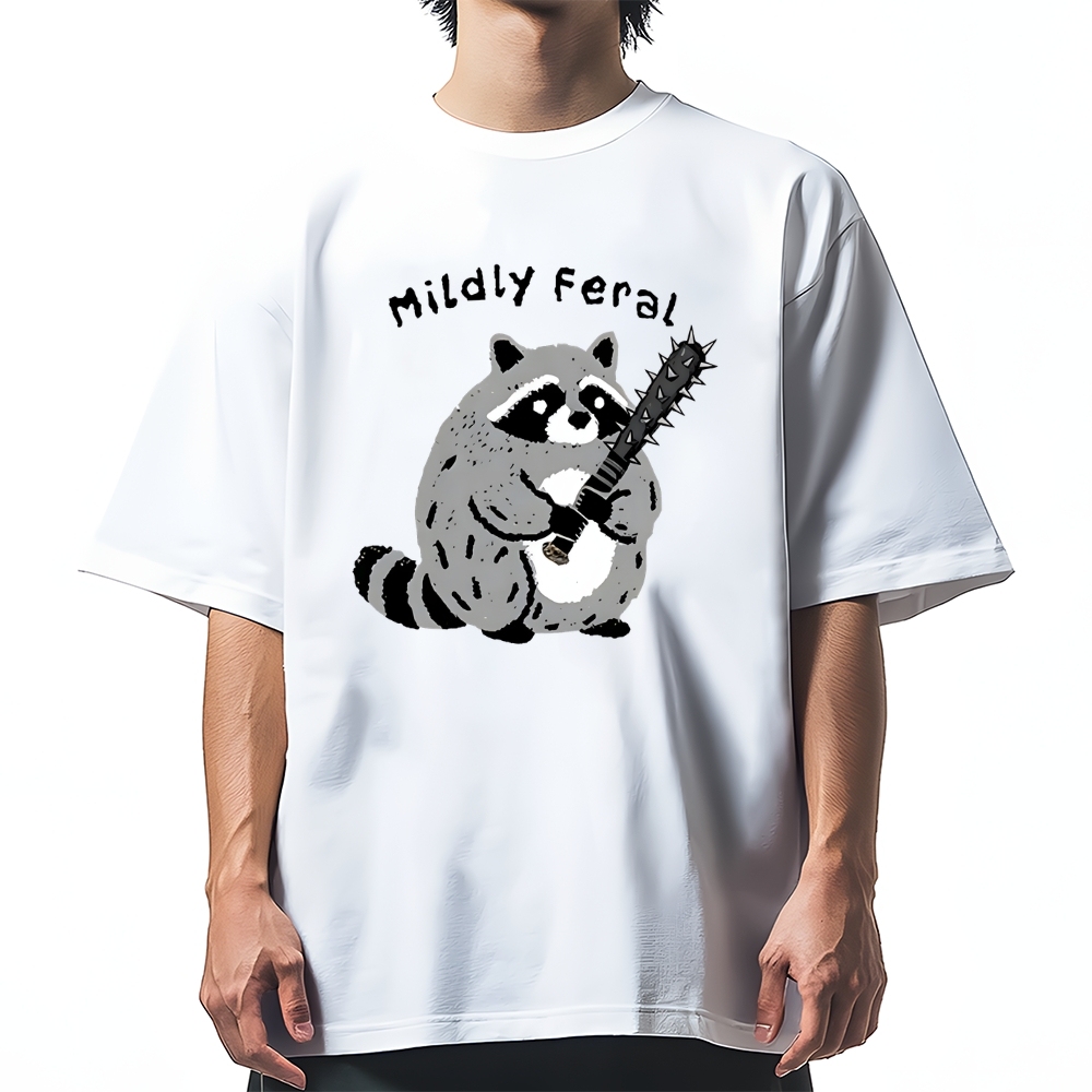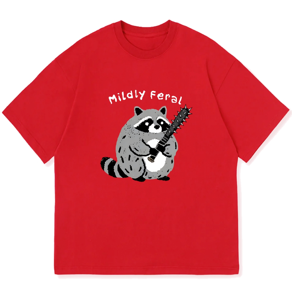 Cute But Feral Raccoon Cartoon Cotton casual T-shirt