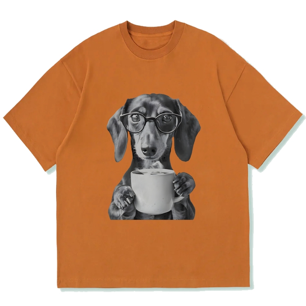 Dachshund Drinking Coffee Cotton casual T-shirt