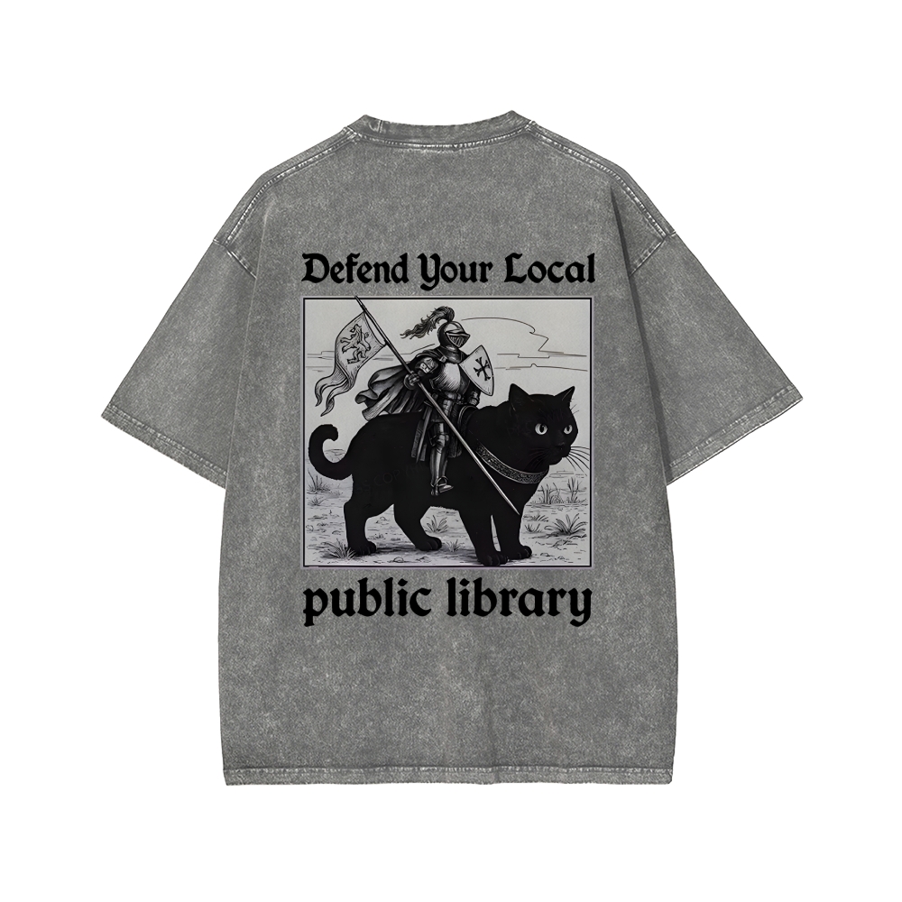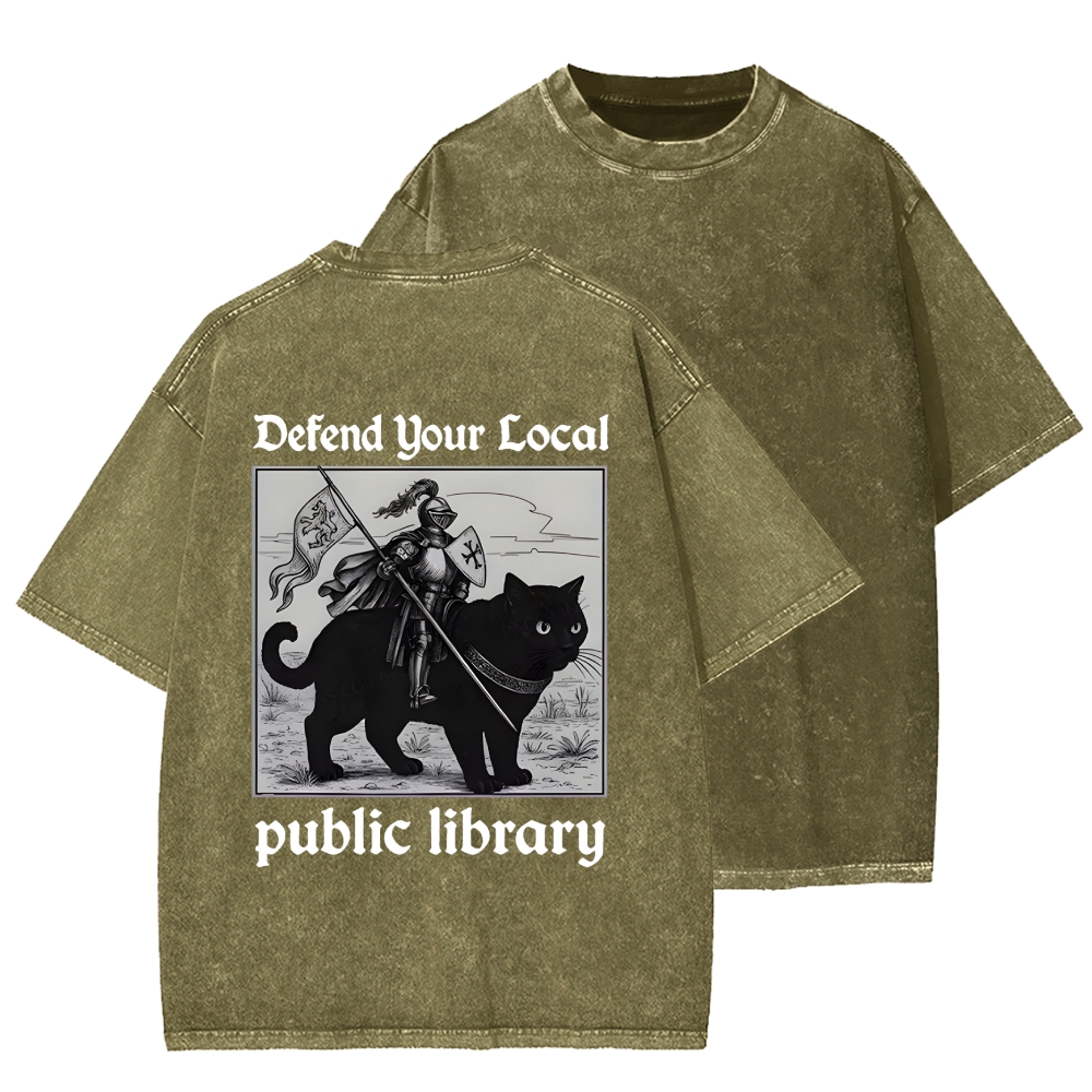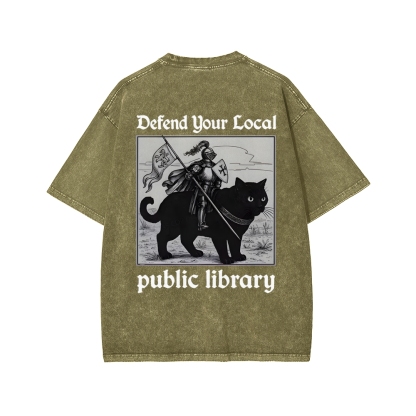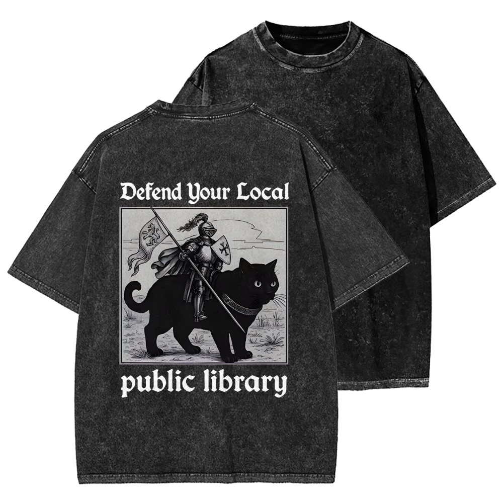 Defend Your Local Public Library Back Printing Washed T-shirt